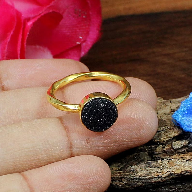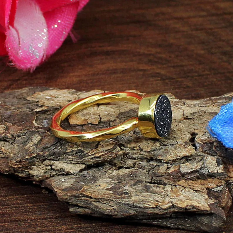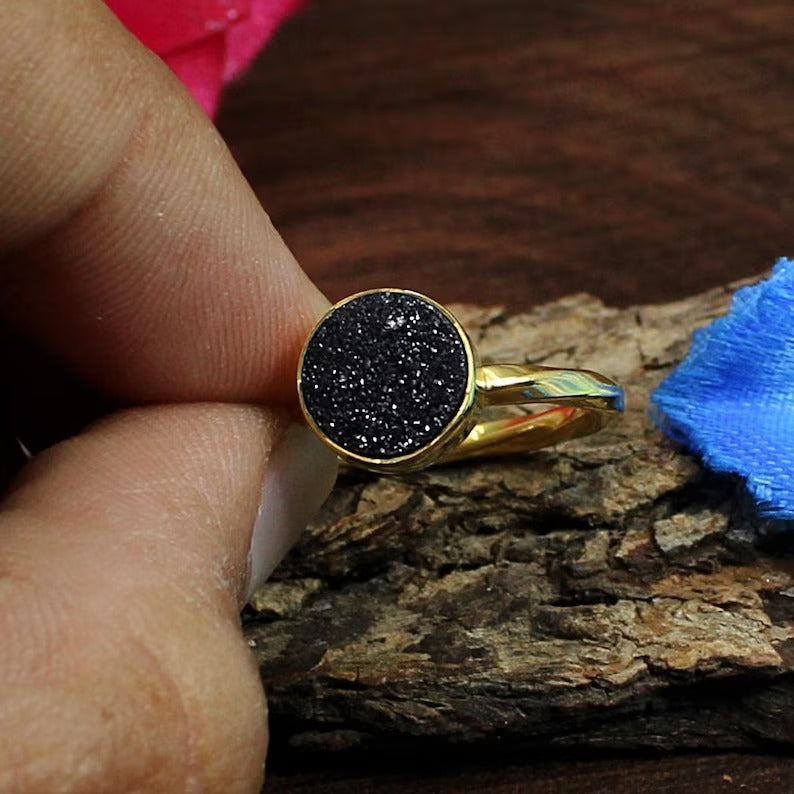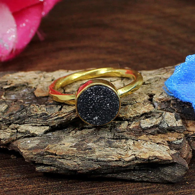 Gold Plated Titanium Druzy Gemstone 92.5 Solid Silver Ring