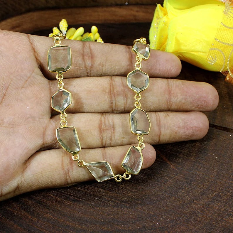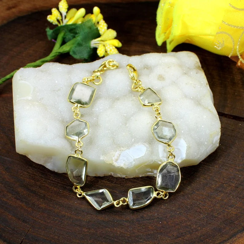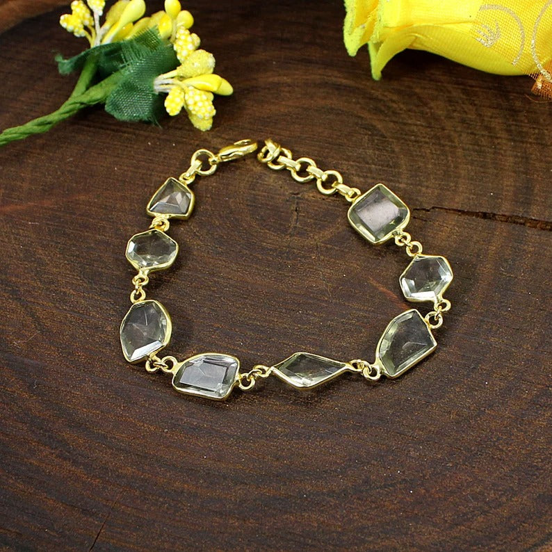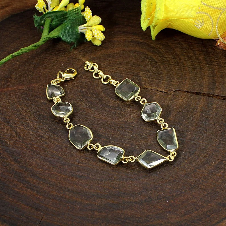 Green Amethyst Gemstone Brass Bracelet