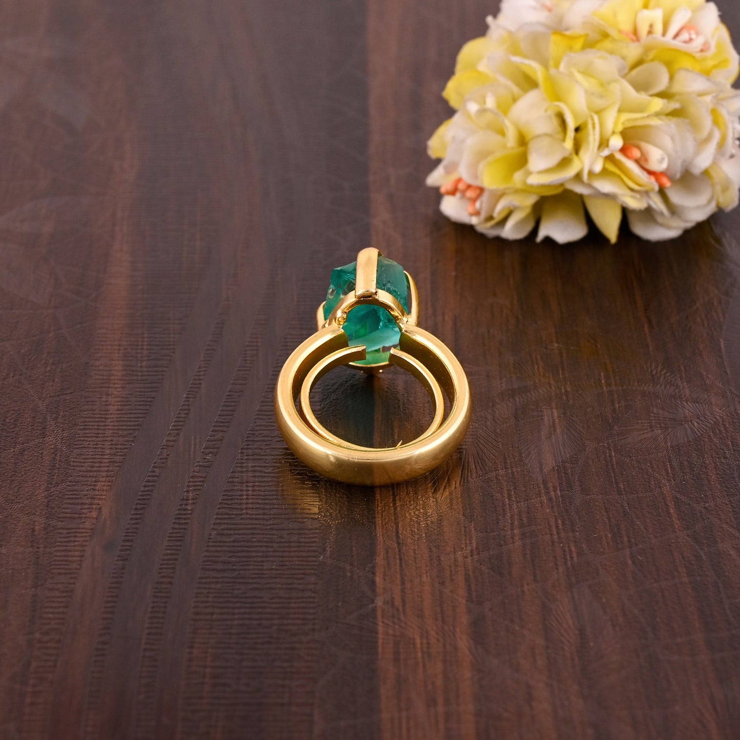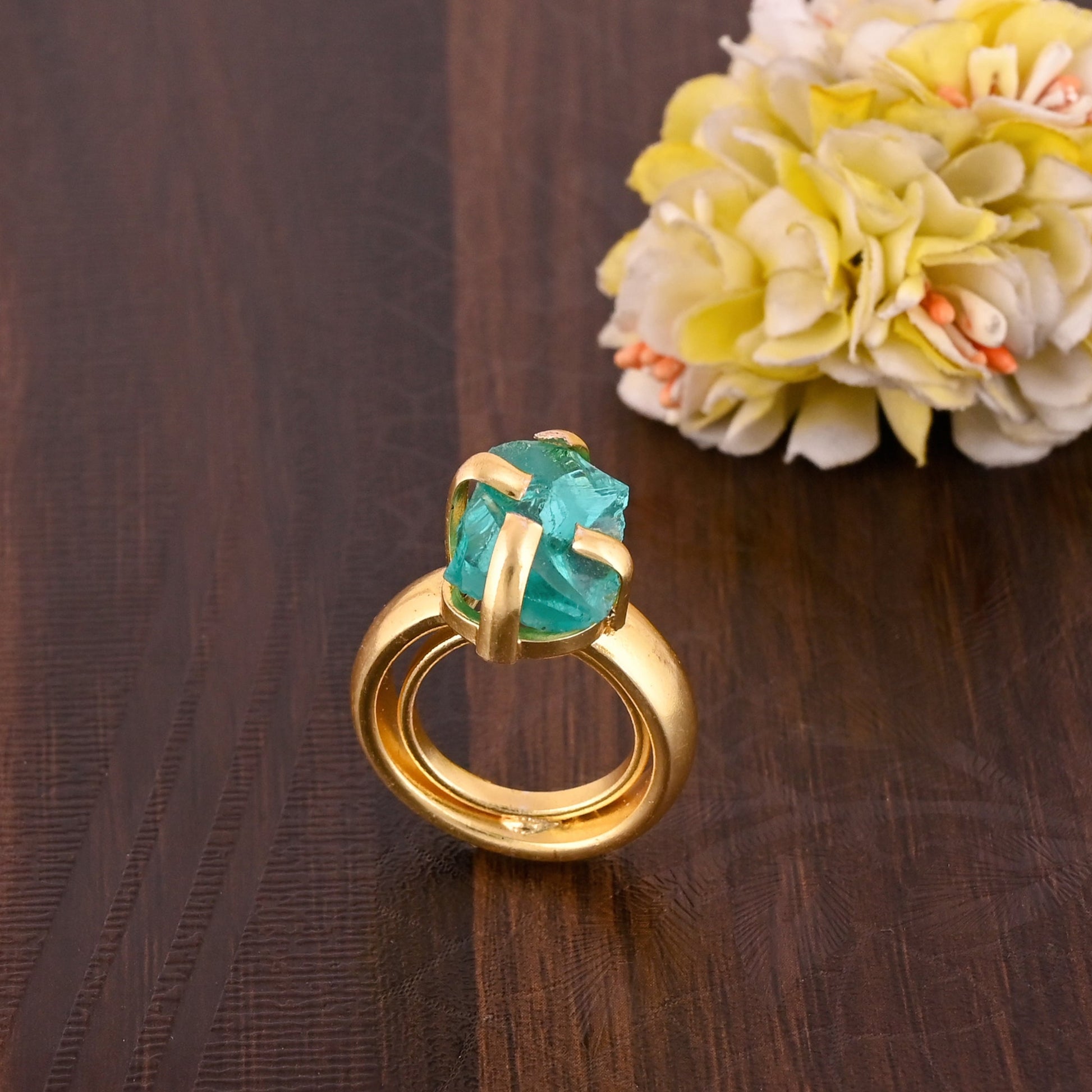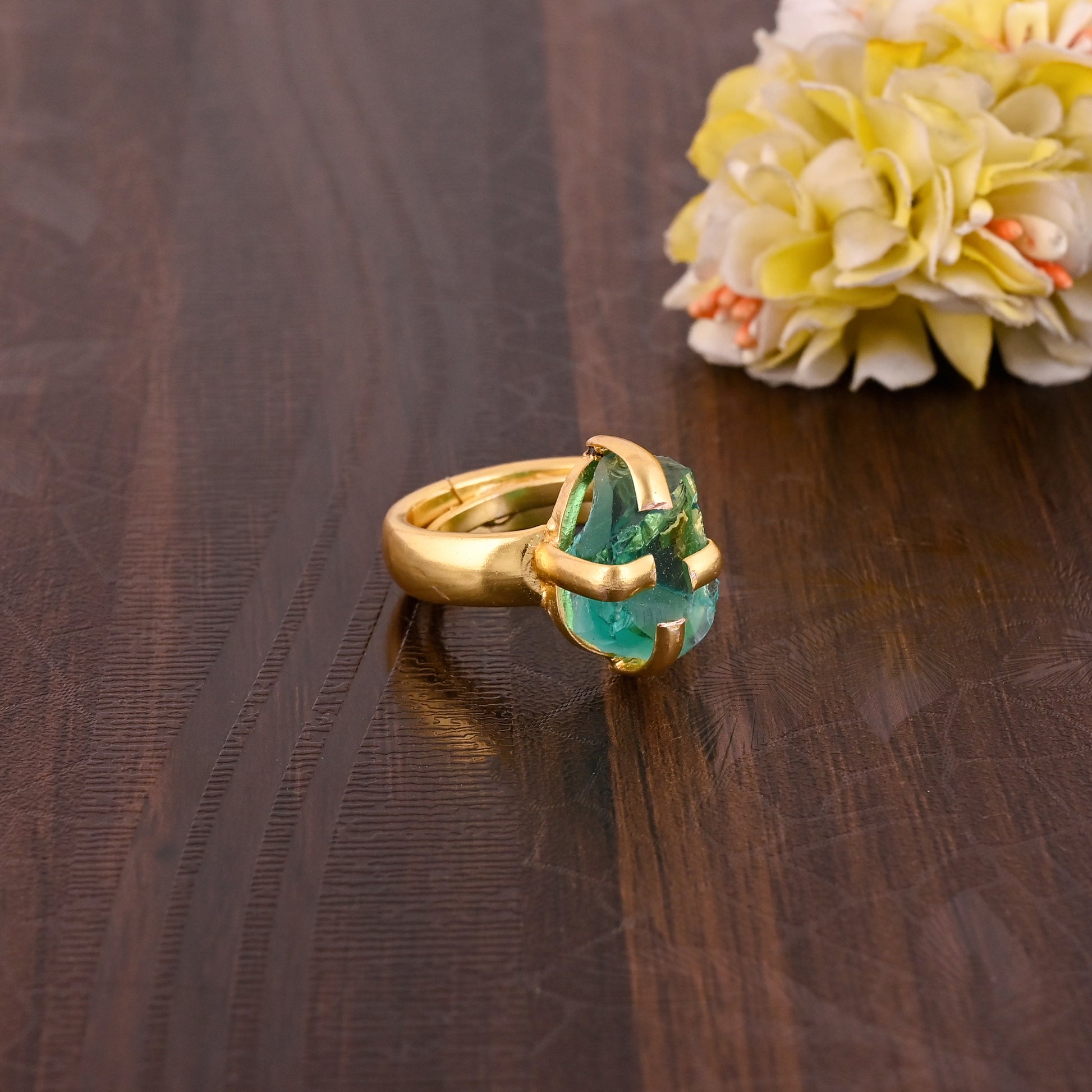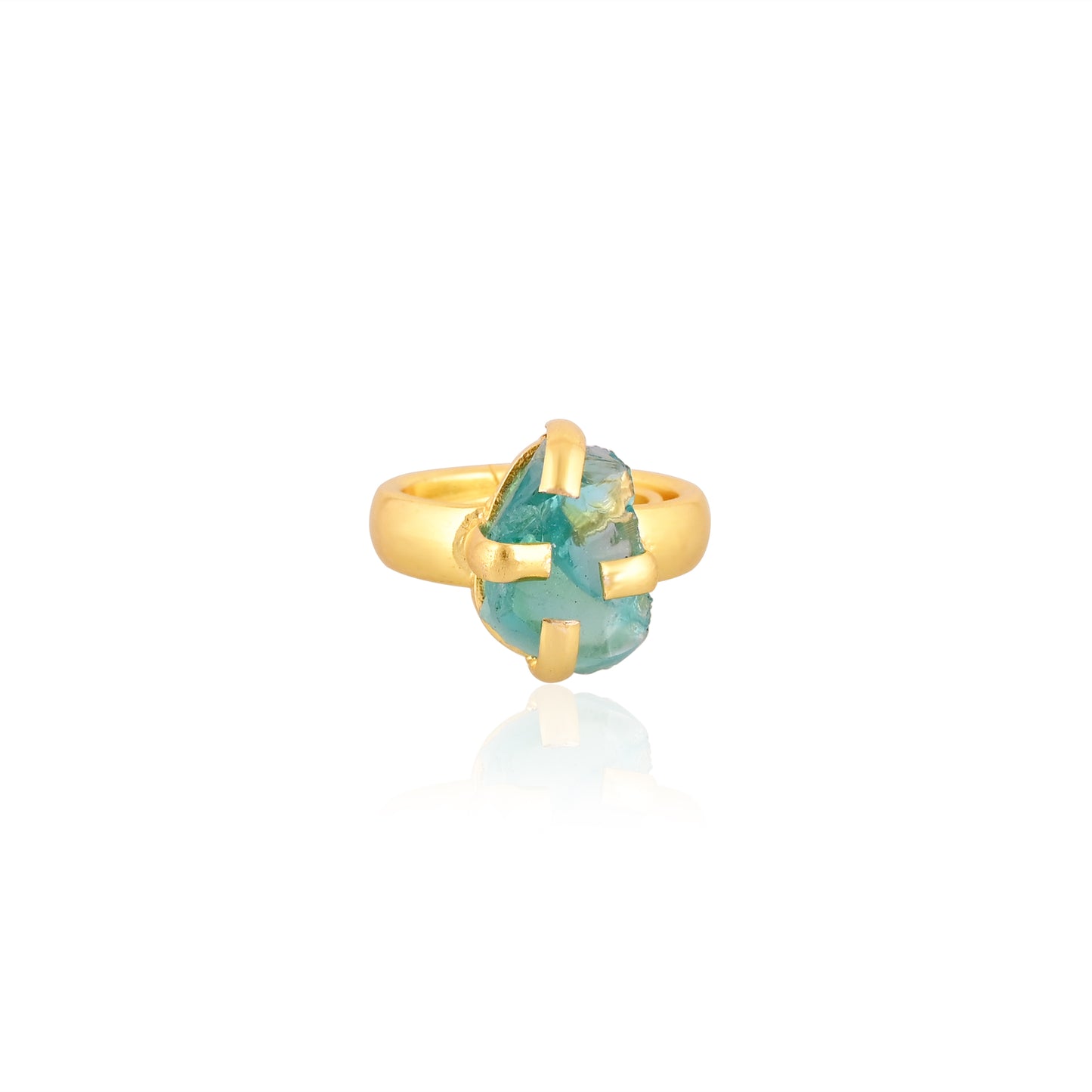 Stylish Green Apatite Brass Gold Plating Gemstone Party Wear Ring.