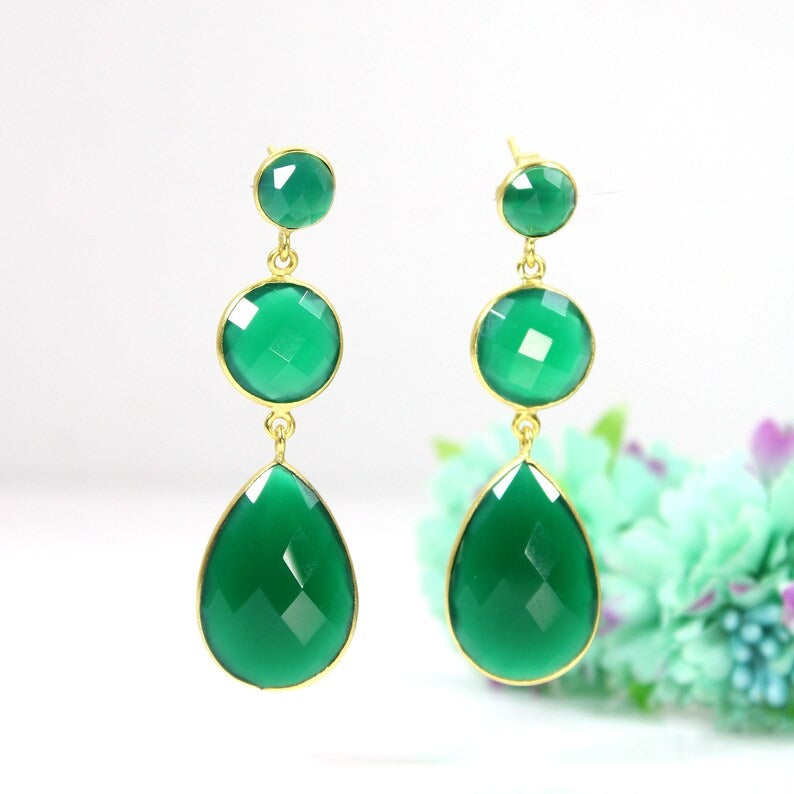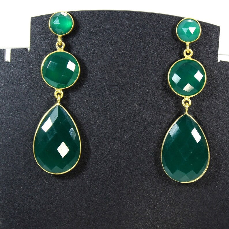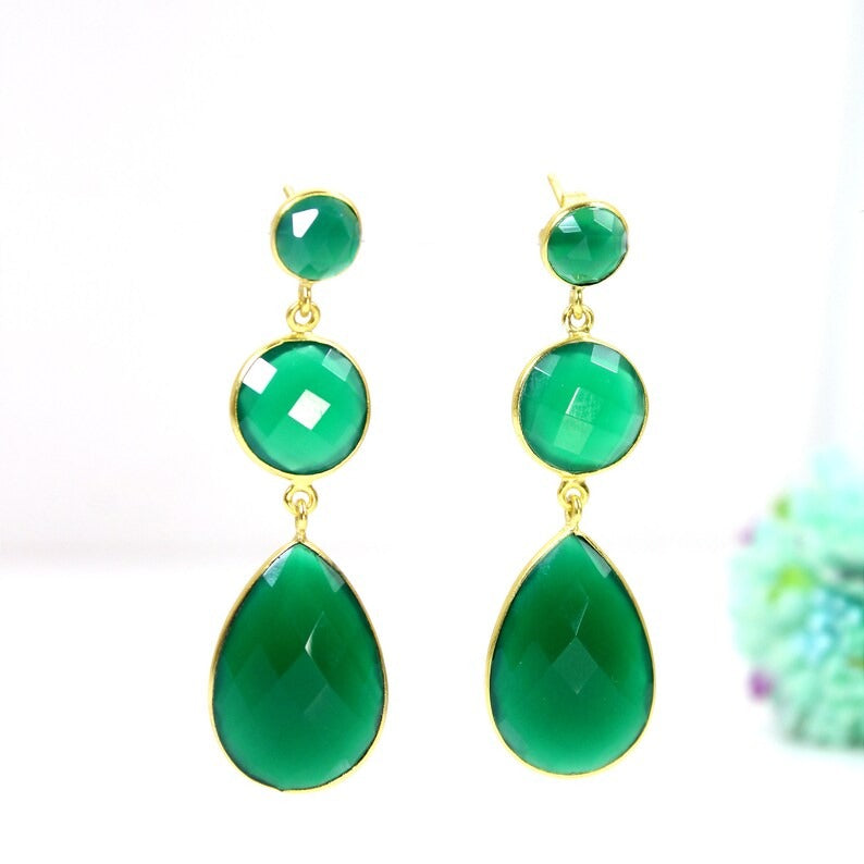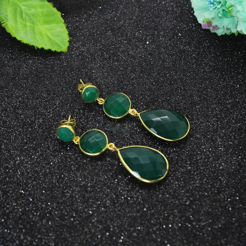 Green Onyx Gemstone Gold Plated Dangle Earrings