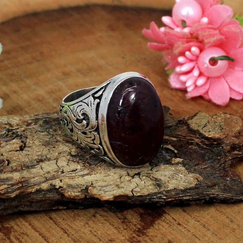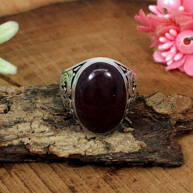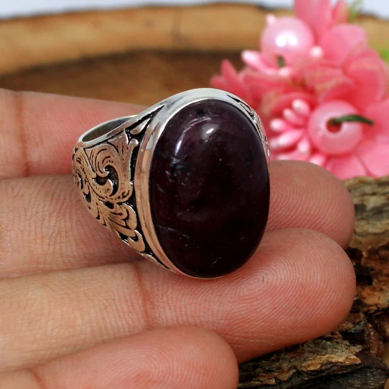 Indian Ruby Gemstone 92.5 Solid Silver Ring
