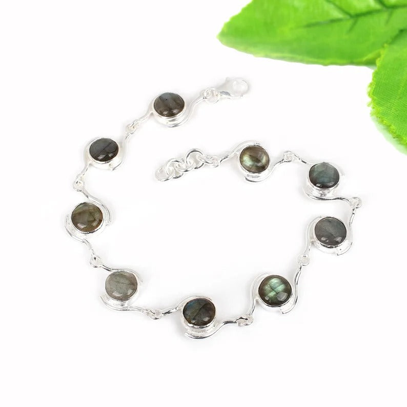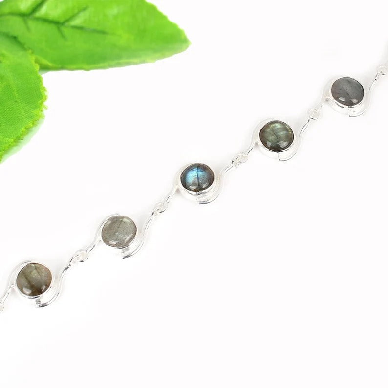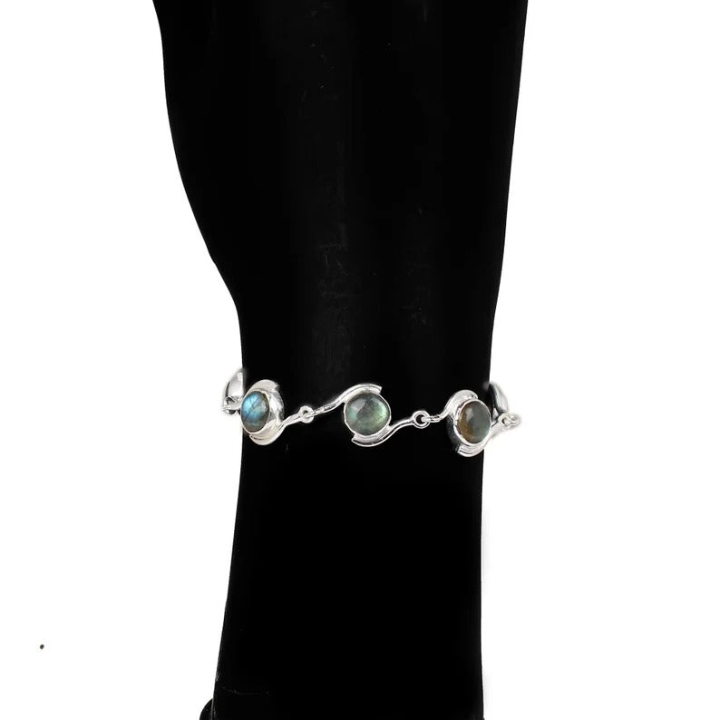 Labradorite Gemstone 92.5 Sterling Silver Bracelet