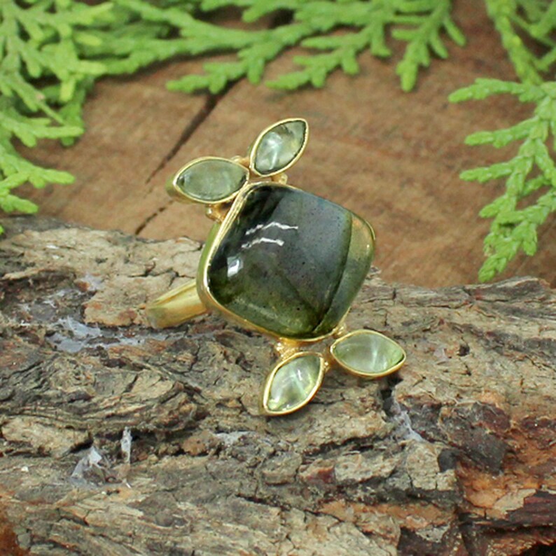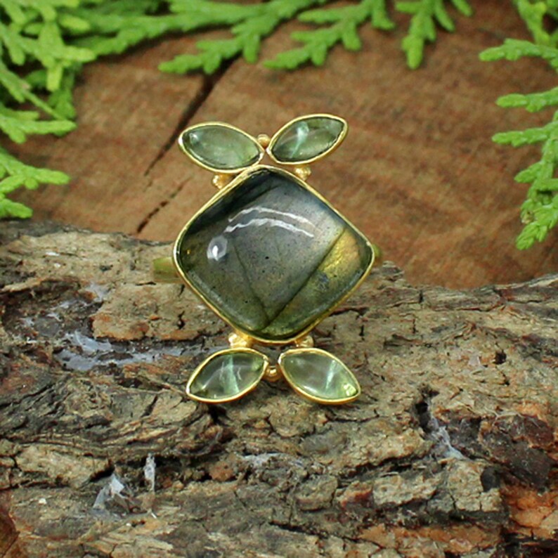 ✦Gemstone : Natural Labradorite & Aqua Crackle Glass