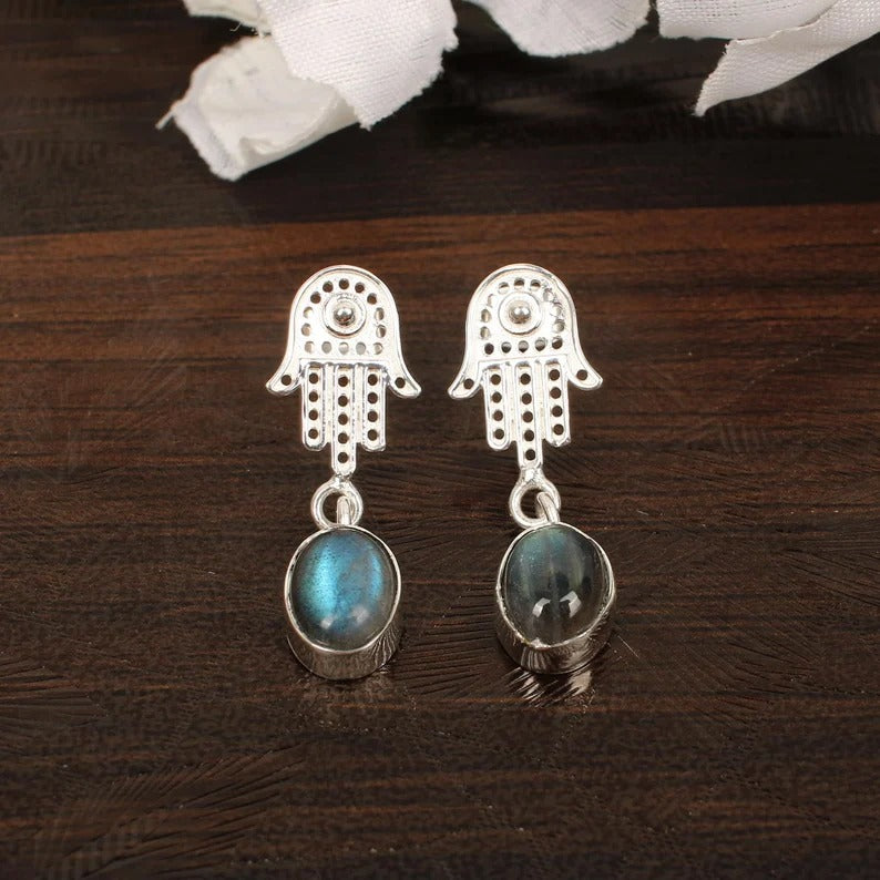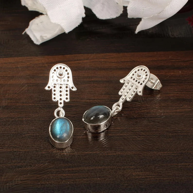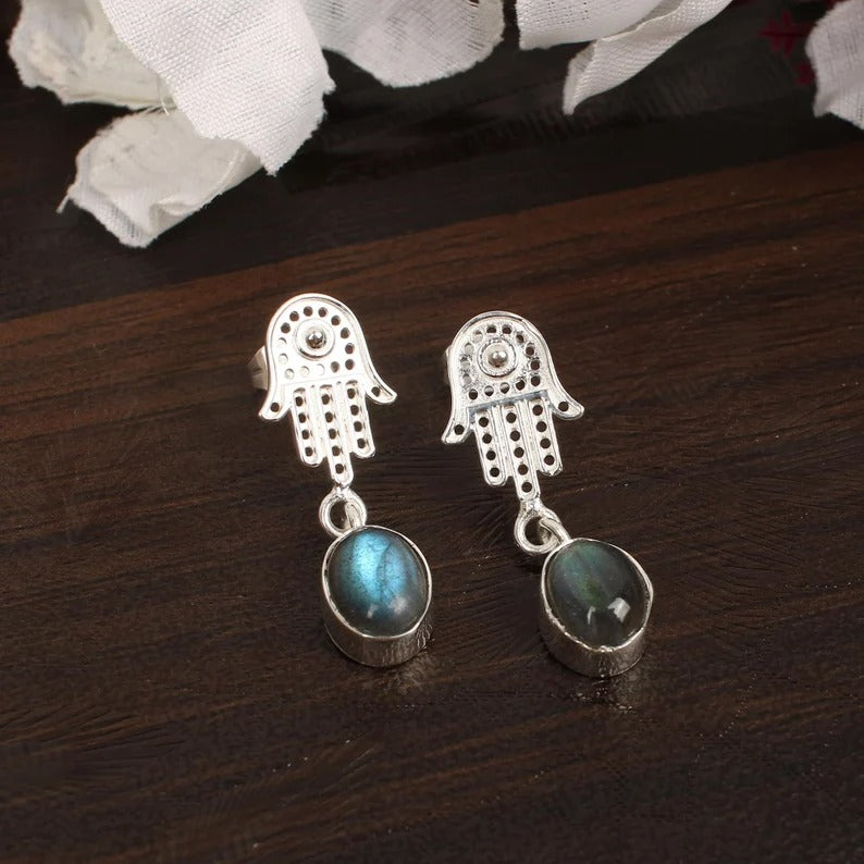 Labradorite Handmade Gemstone Brass Earrings