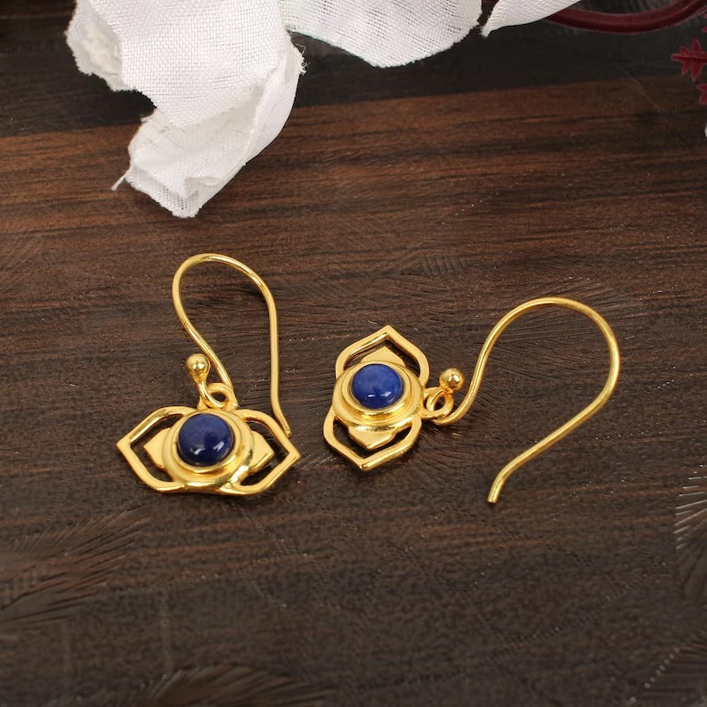 Lapis Lazuli Gemstone Gold Plated Earrings