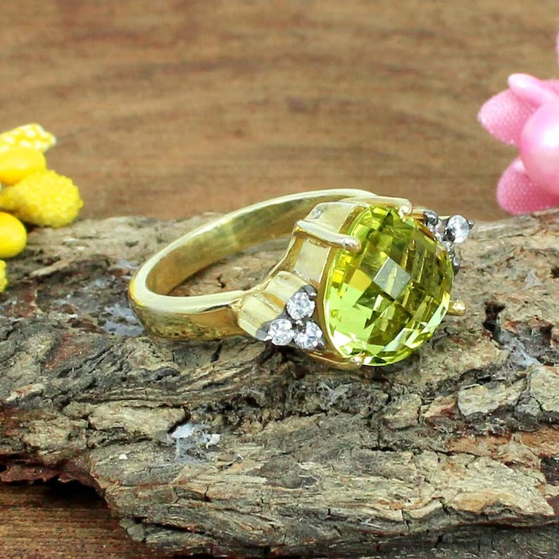 Lemon Quartz Gemstone 92.5 Sterling Silver Ring