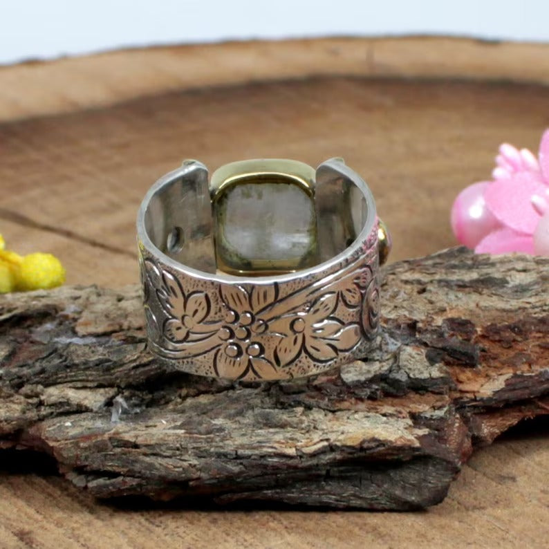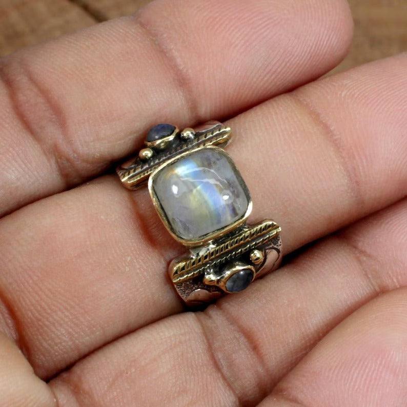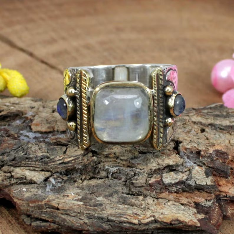 Moonstone Gemstone Two Tone Plating Sterling Silver Ring