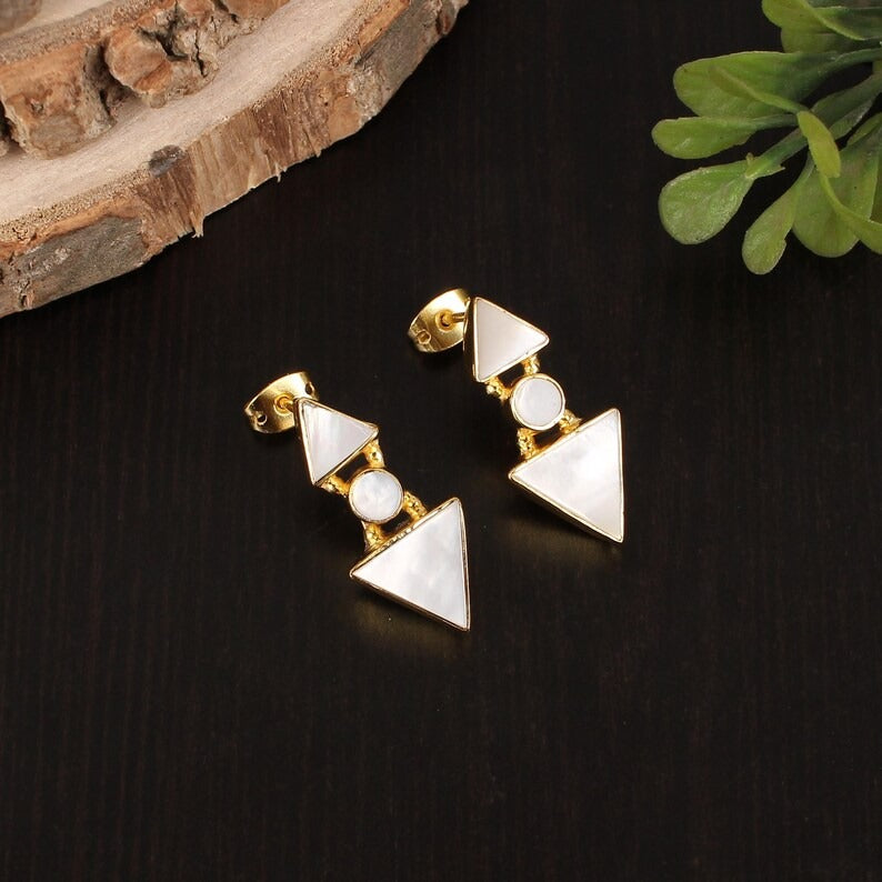 Mother of Pearl Gold Plated Brass Gemstone Handmade Dangle Earring