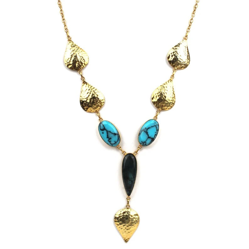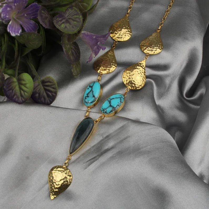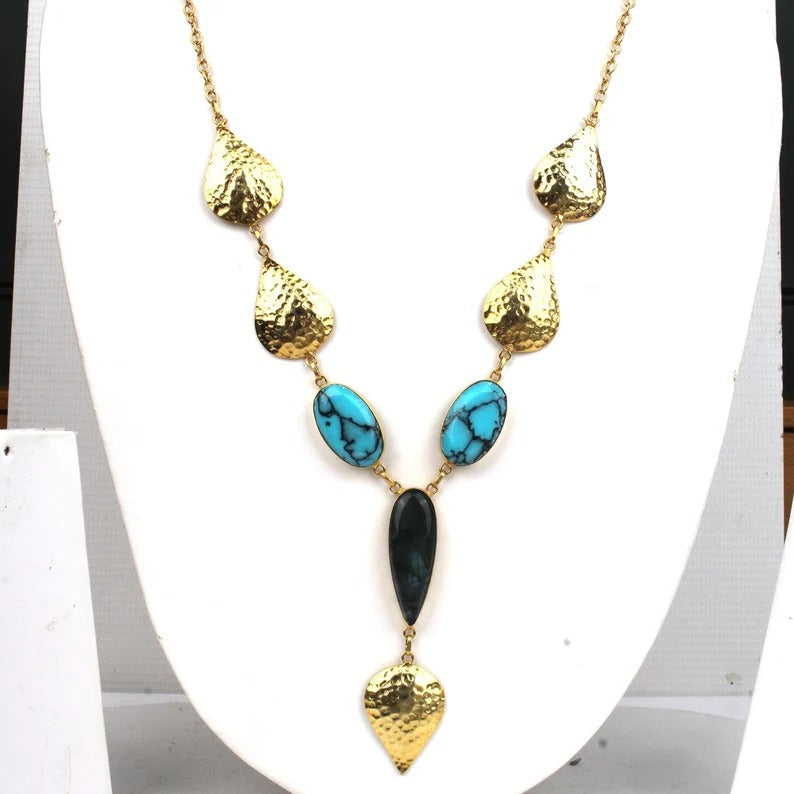 Stone: Synthetic Turquoise, Doublet Gemstone (Blue Topaz Hydro, Labradorite)