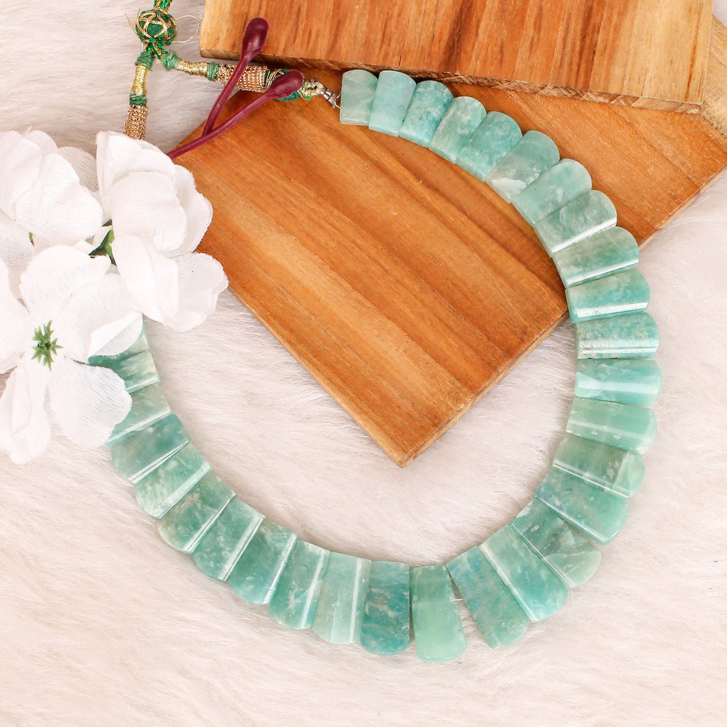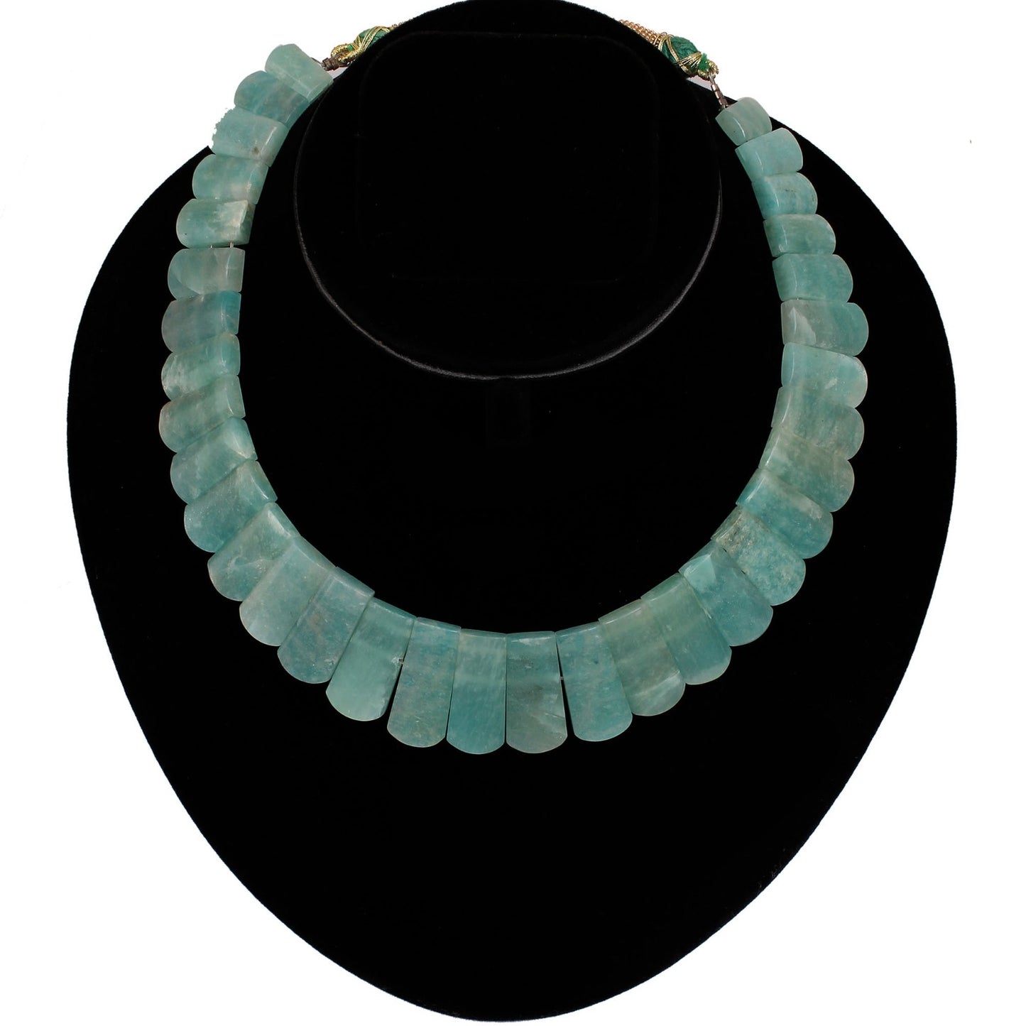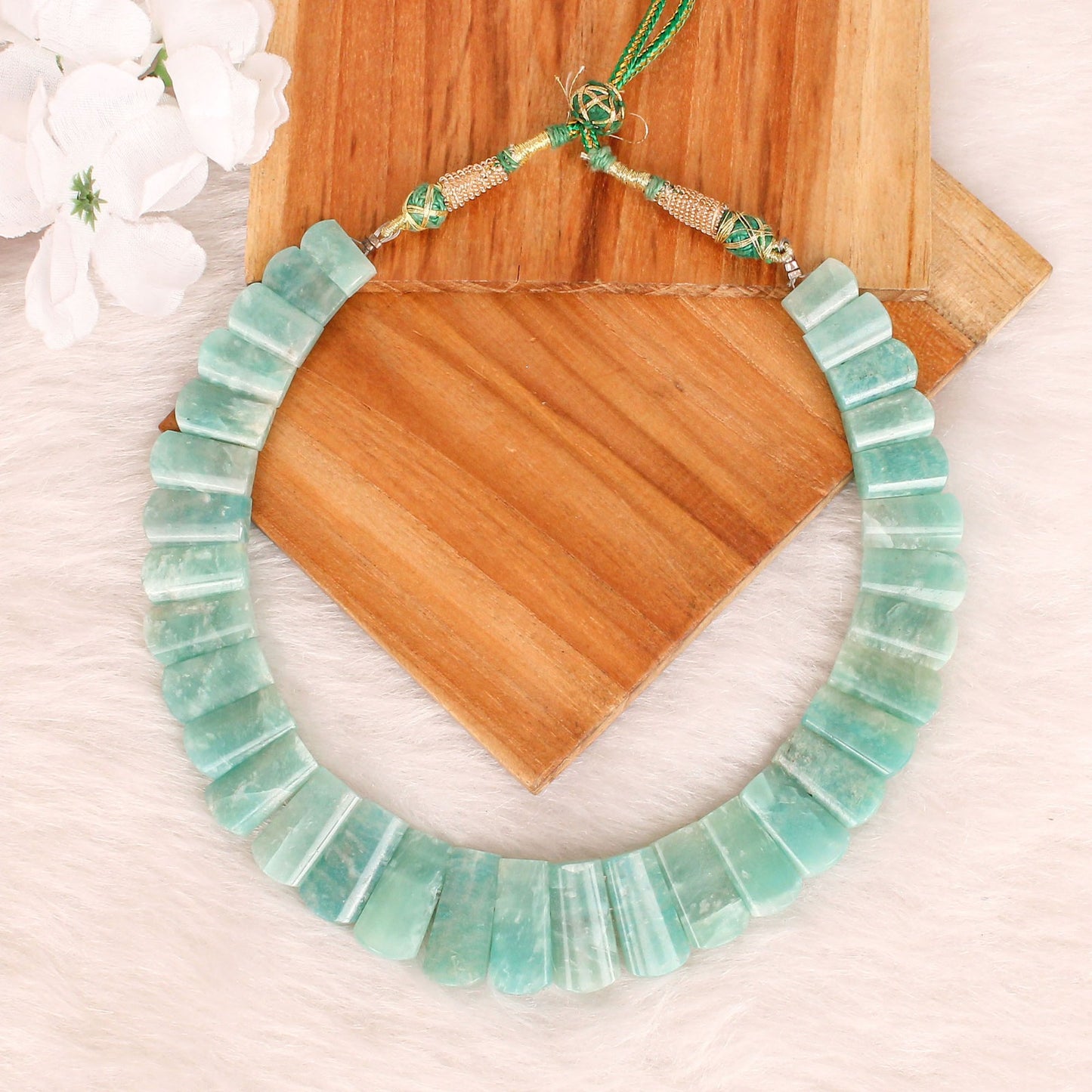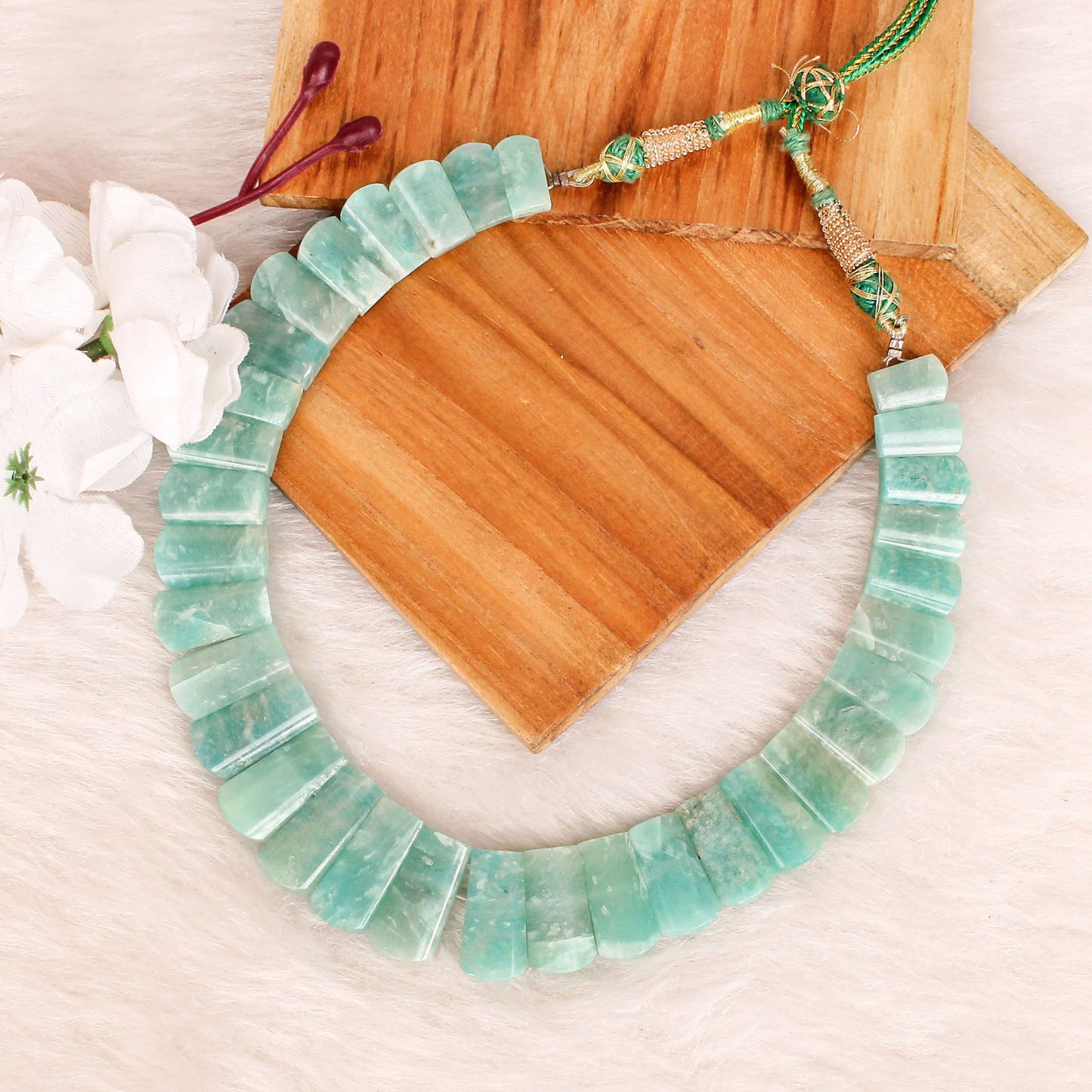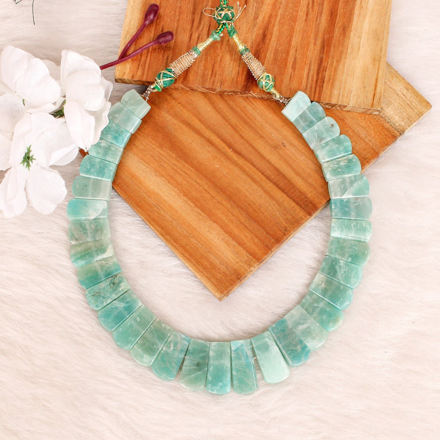 Natural Amazonite Fancy Shape Designer Beaded Necklace
