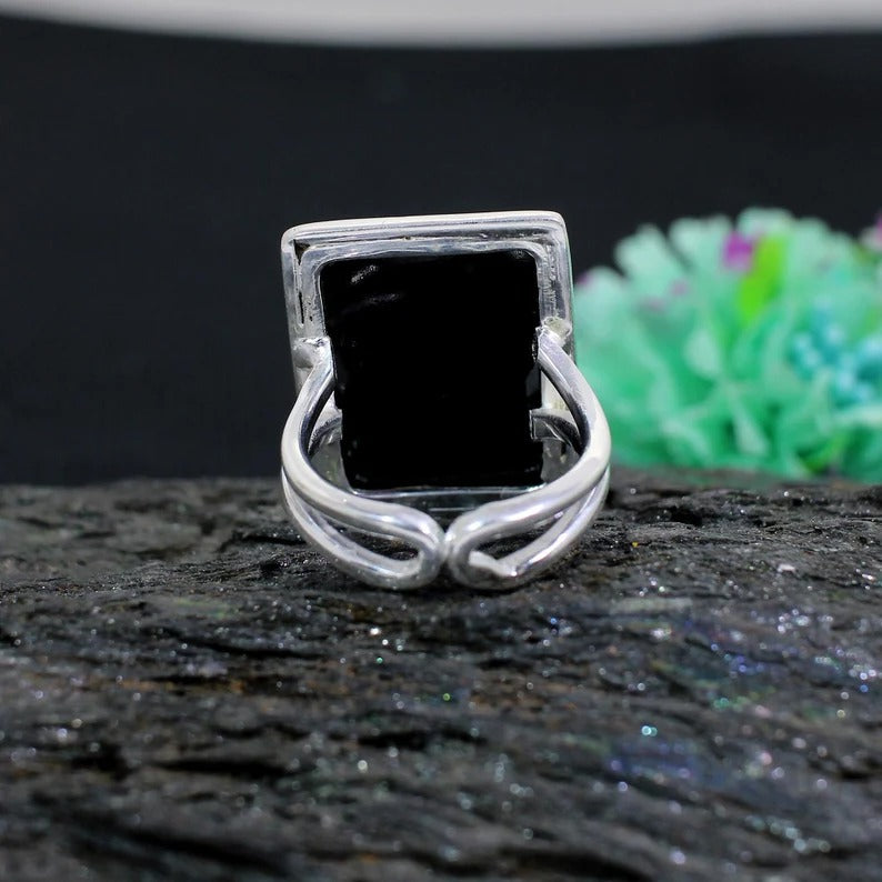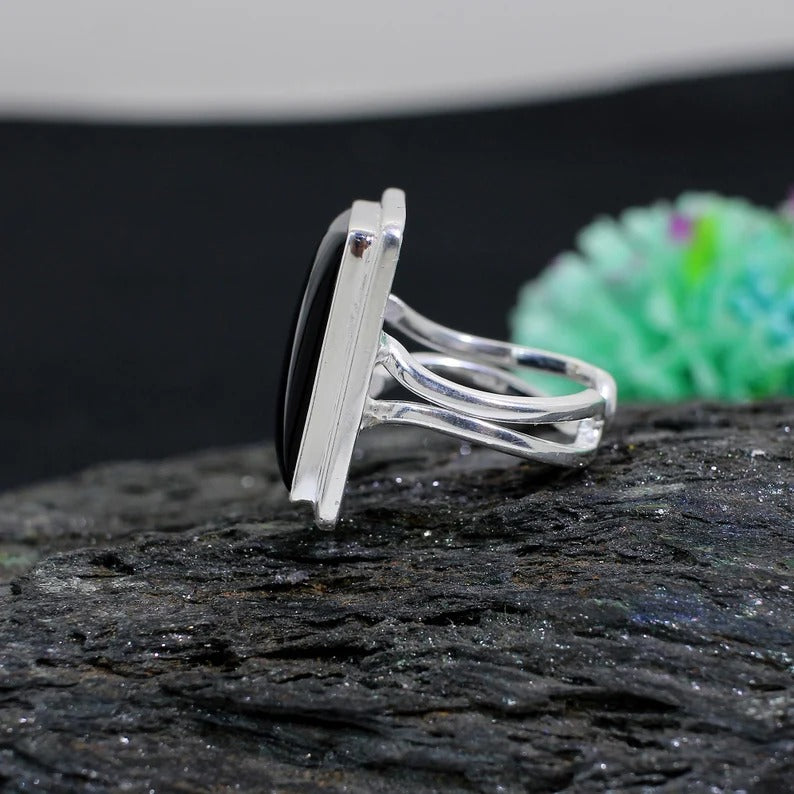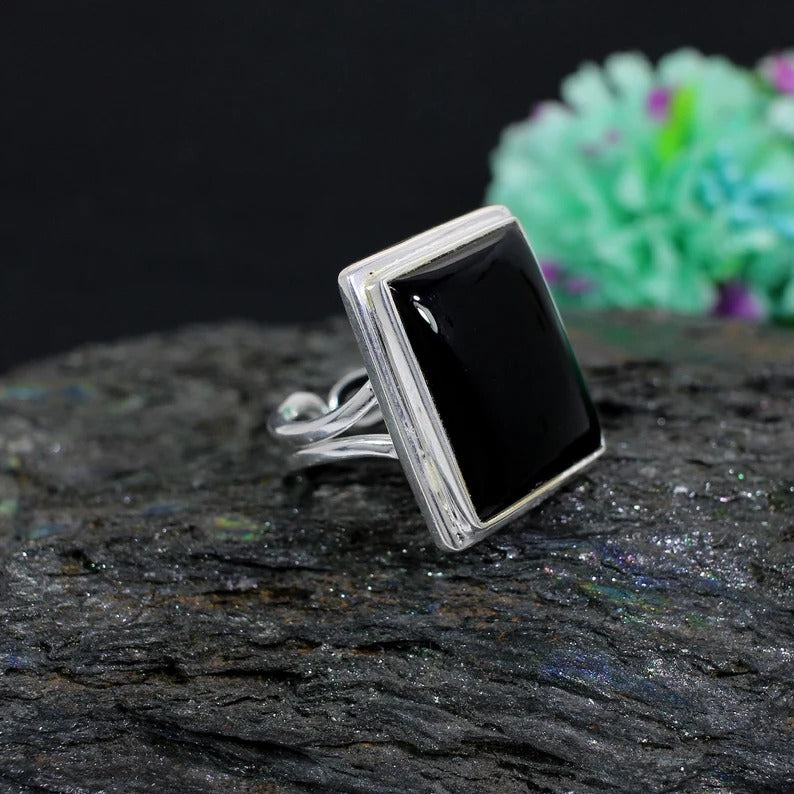 Natural Black Onyx Gemstone 92.5 Sterling Silver Ring