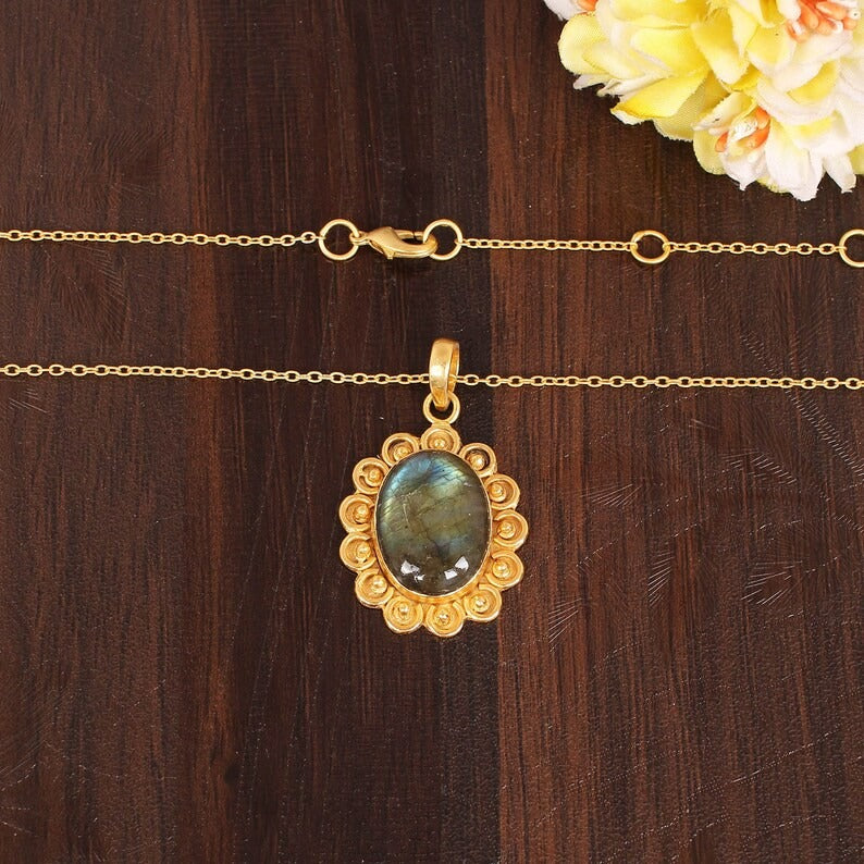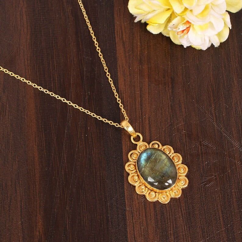 Natural Blue Fire Labradorite Necklace