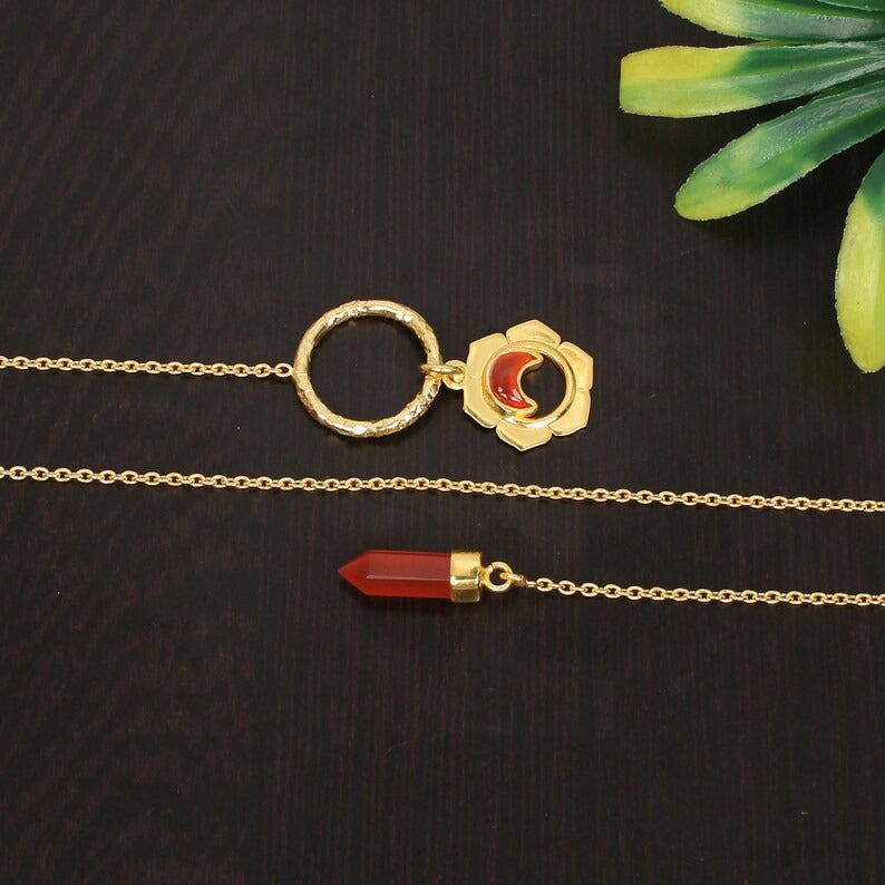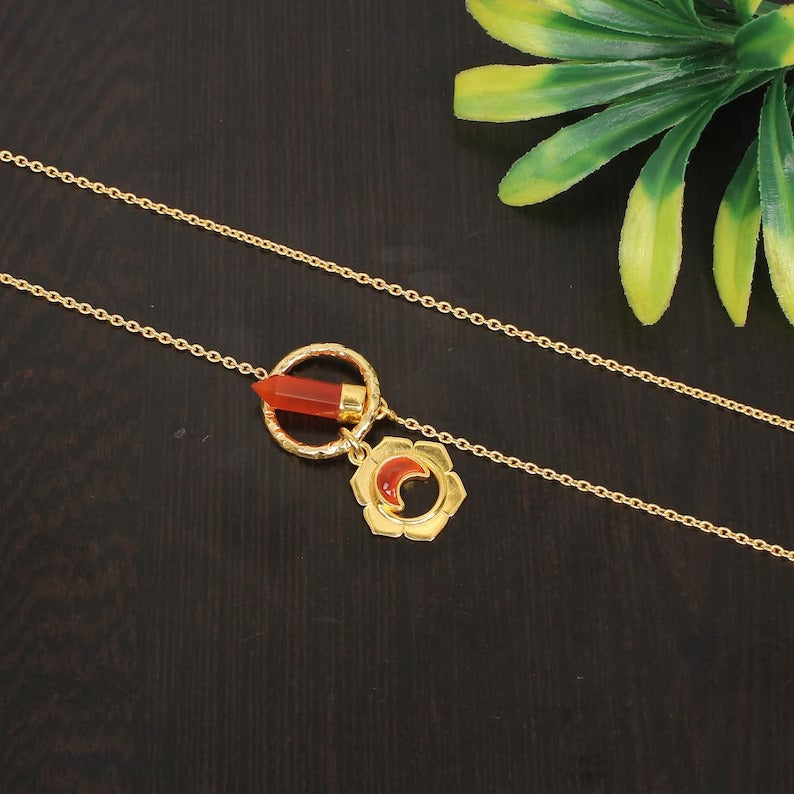 Natural Carnelian Gemstone 92.5 Sterling Silver Necklace