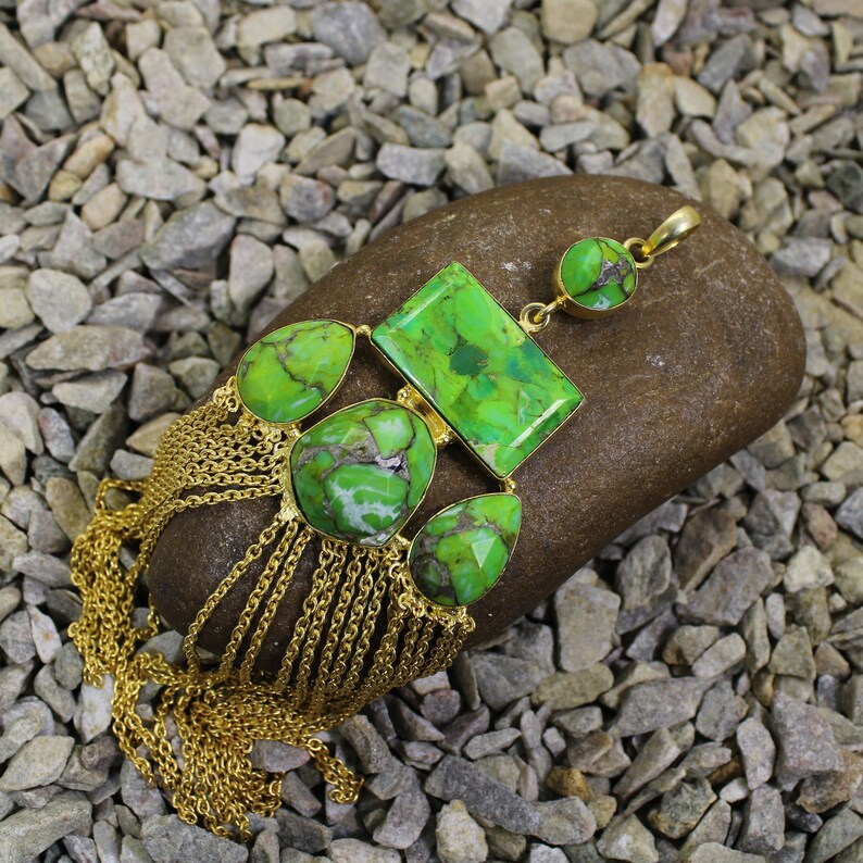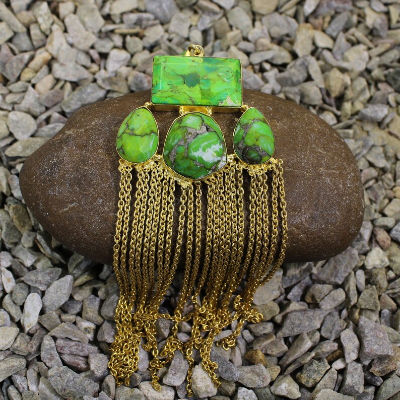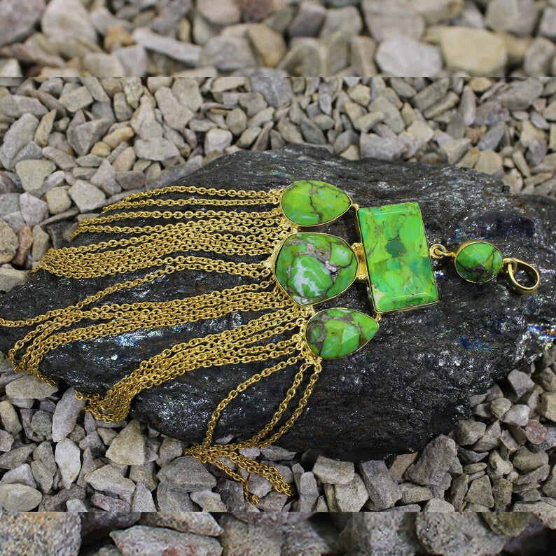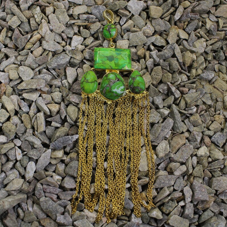 Natural green Mohave Copper Turquoise Gemstone Brass Pendant