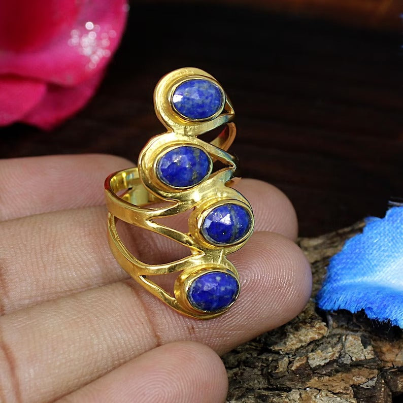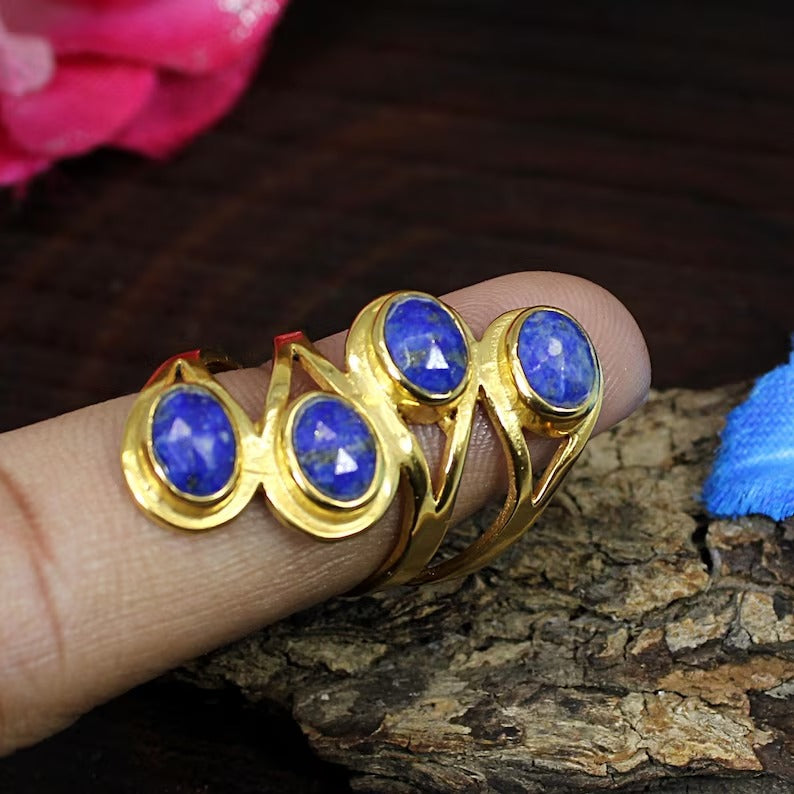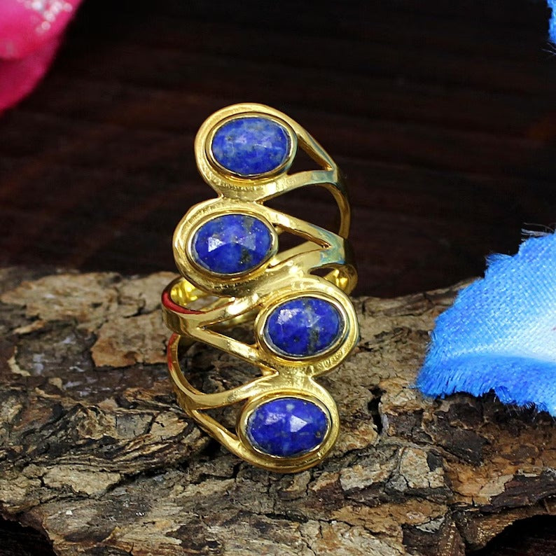 Natural Lapis Lazuli Gemstone 92.5 Solid Silver Ring