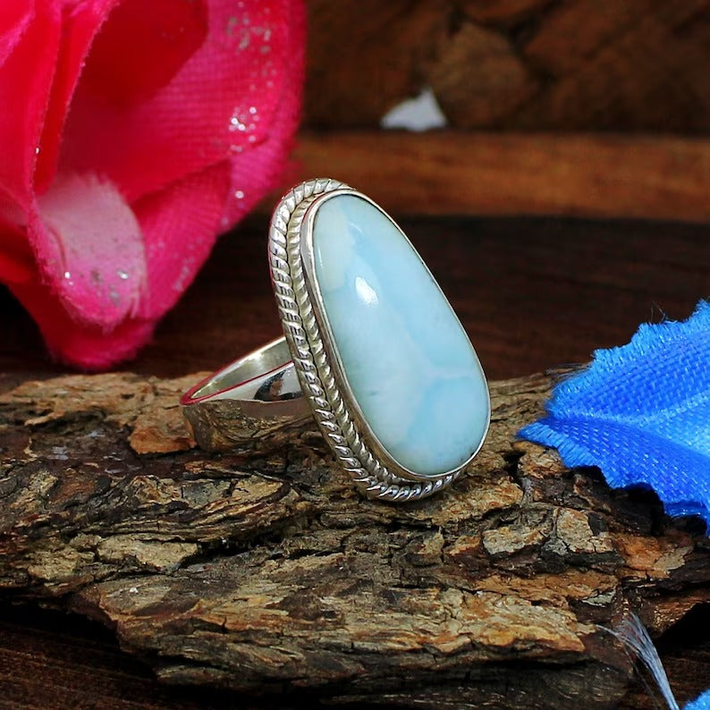 Natural Larimar Bezel Set 92.5 Sterling Silver Ring