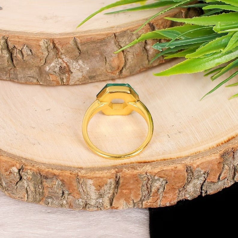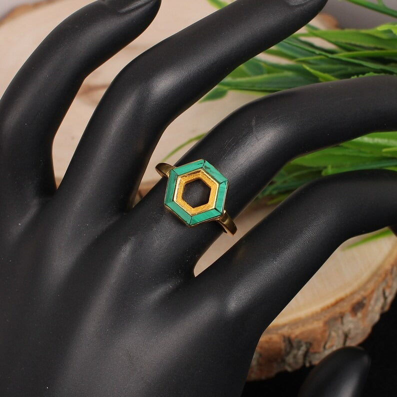 Natural Malachite Gemstone 925 Sterling Silver Hexagon Ring