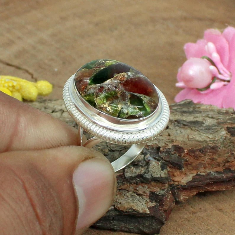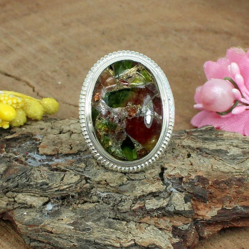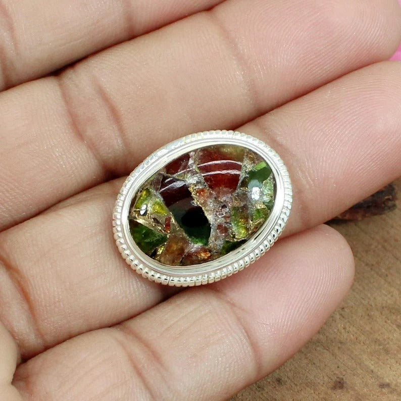 Natural Mohave Eudialyte Turquoise Gemstone 92.5 Sterling Silver Ring