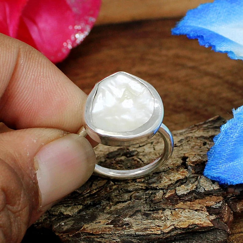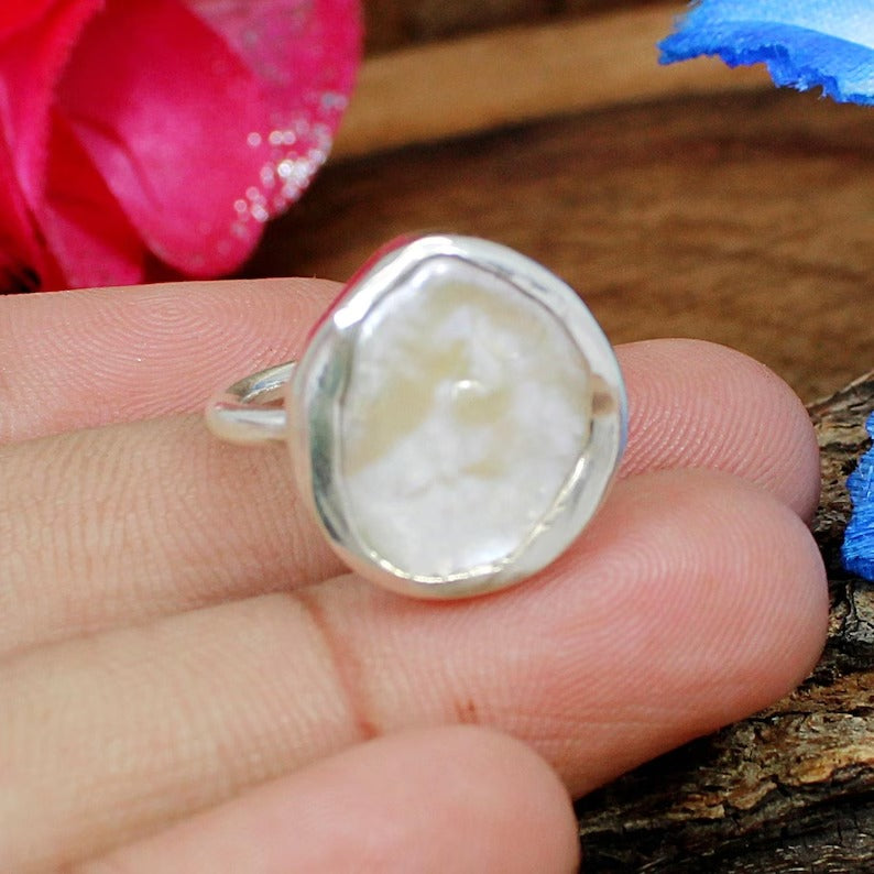 Natural Pearl Gemstone 92.5 Sterling Silver Ring