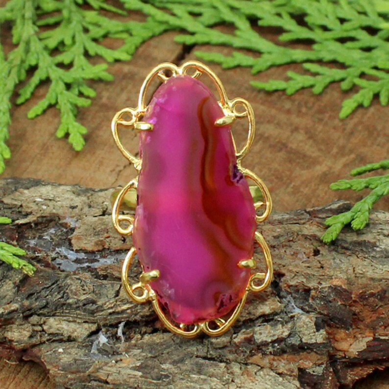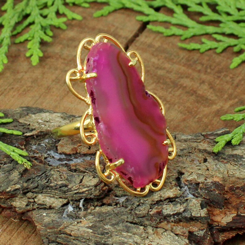Natural Pink Slice Agate Gemstone Sterling Silver Ring