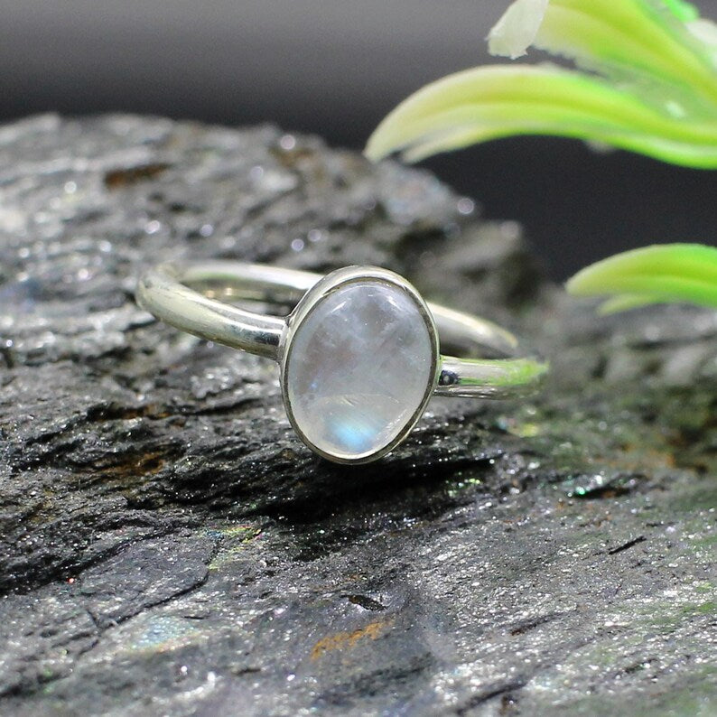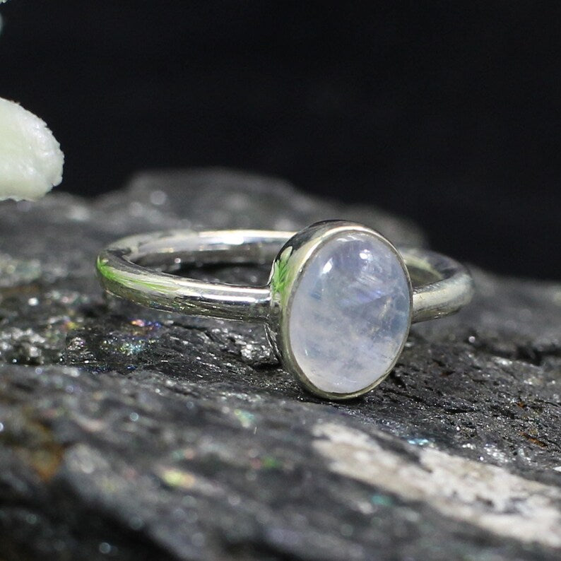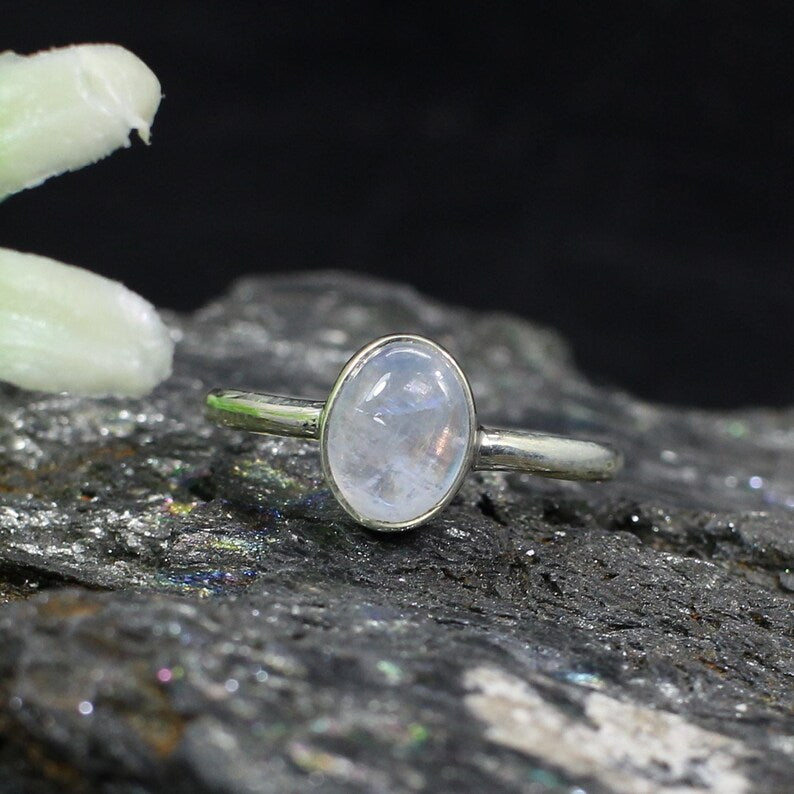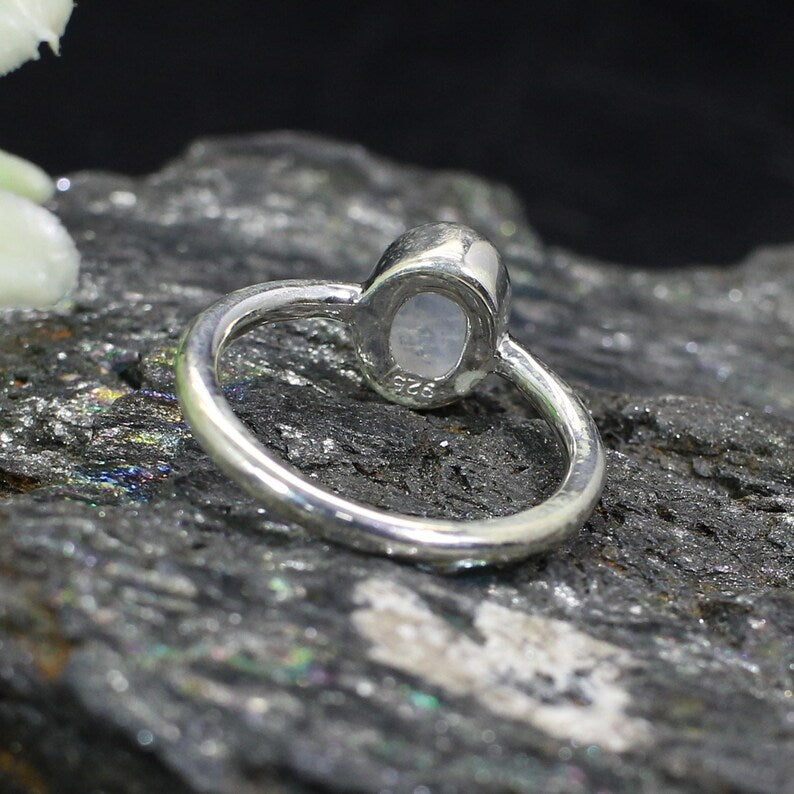 Natural Rainbow Moonstone Gemstone 92.5 Sterling SIlver Ring