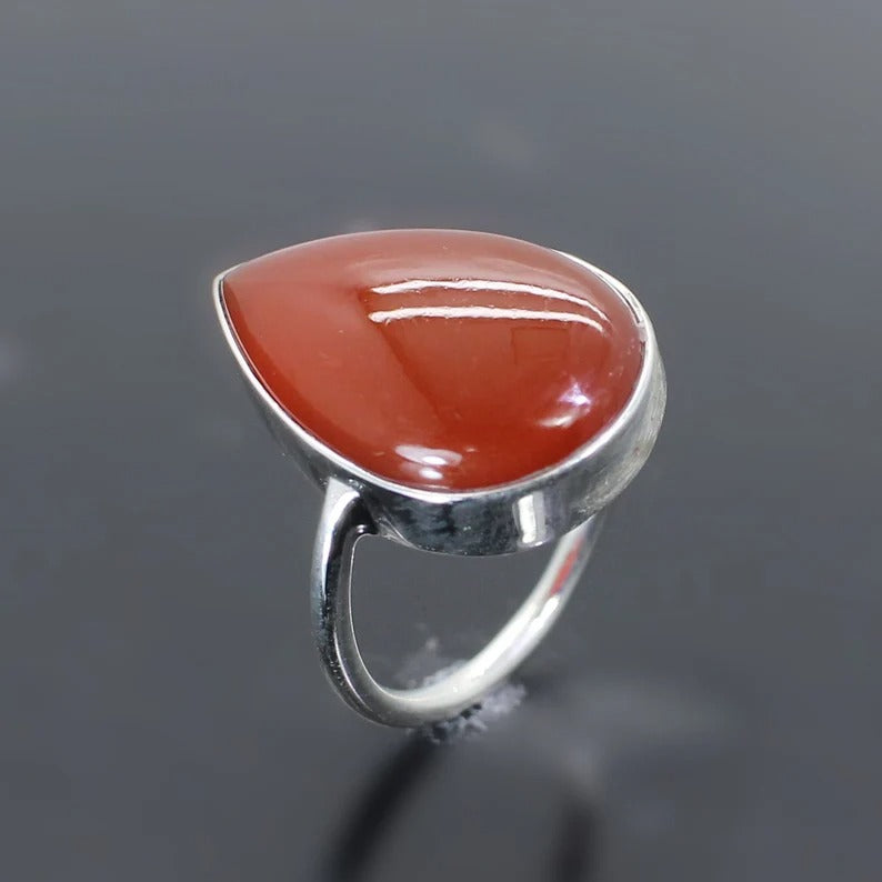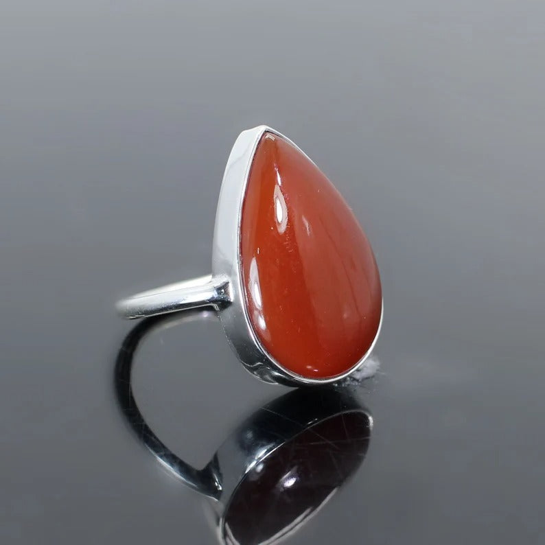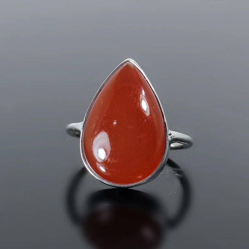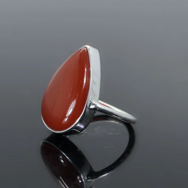 Natural Red Onyx Gemstone 92.5 Sterling Silver Ring