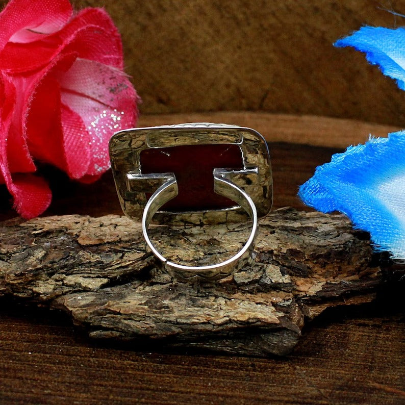 Natural Sponge Coral Gemstone 92.5 Sterling Silver Ring