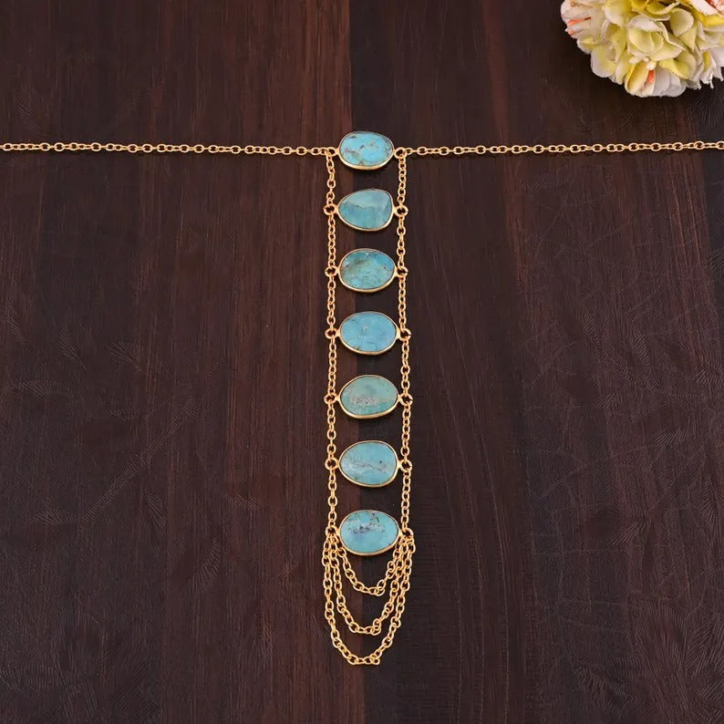 Natural Turquoise Designer Gold Plated Brass Necklace