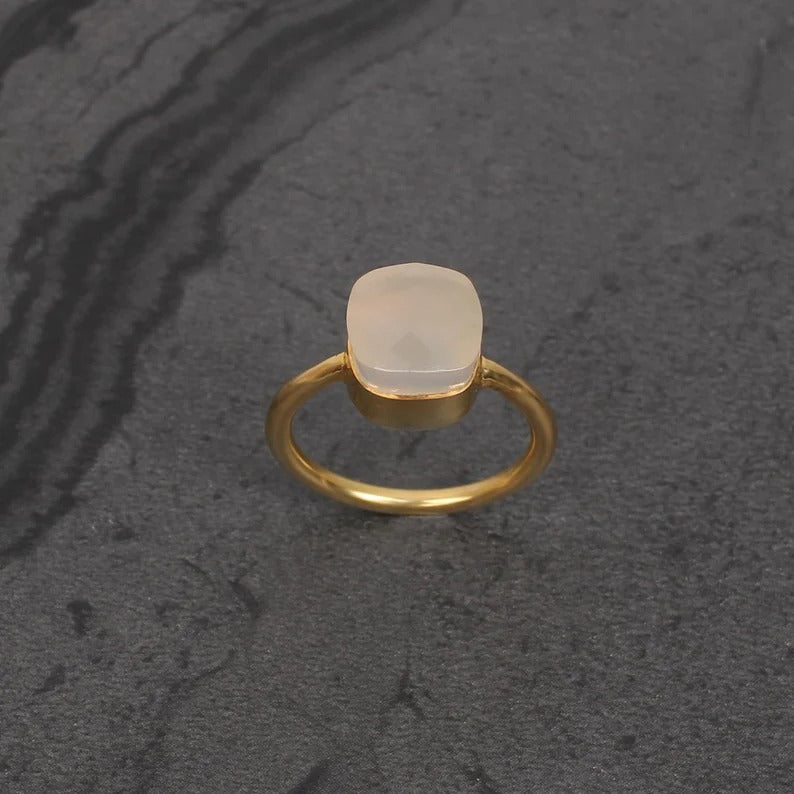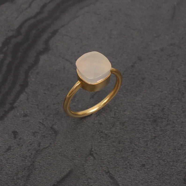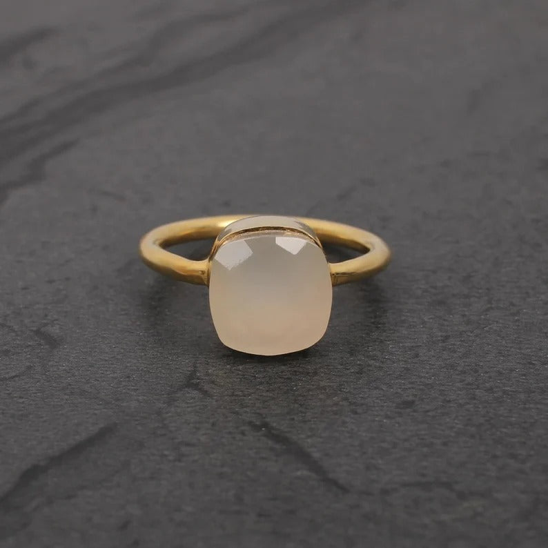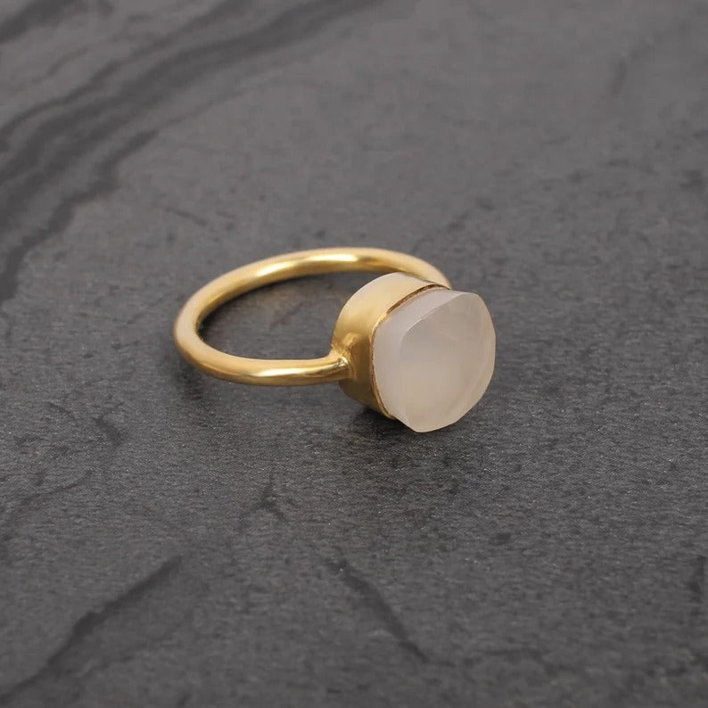 Natural White Onyx Gemstone Sterling Silver Ring