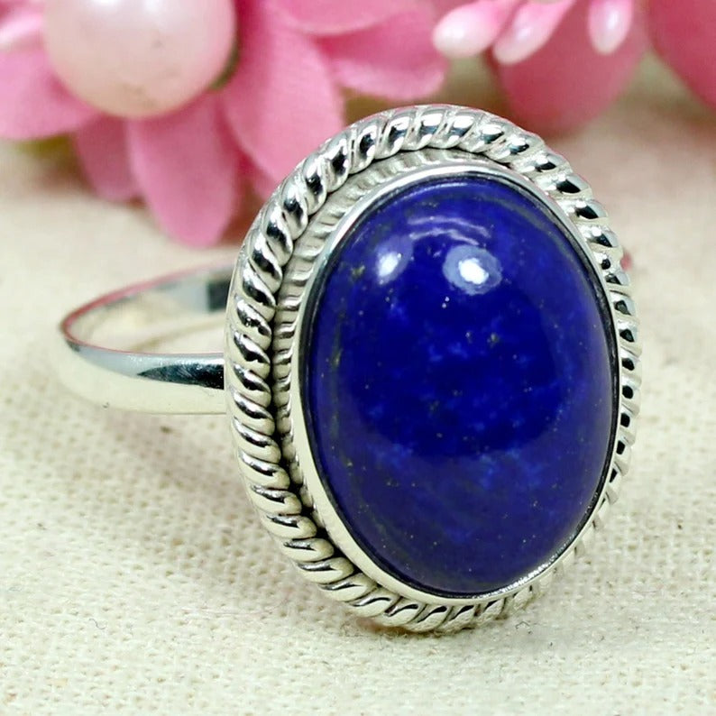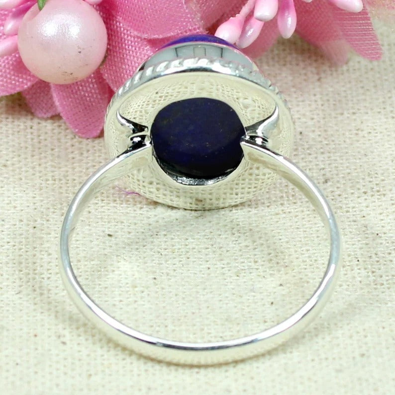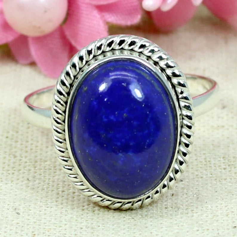 Oval Lapis Lazuli Gemstone 92.5 Sterling Silver Ring