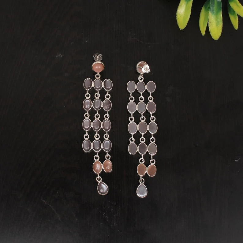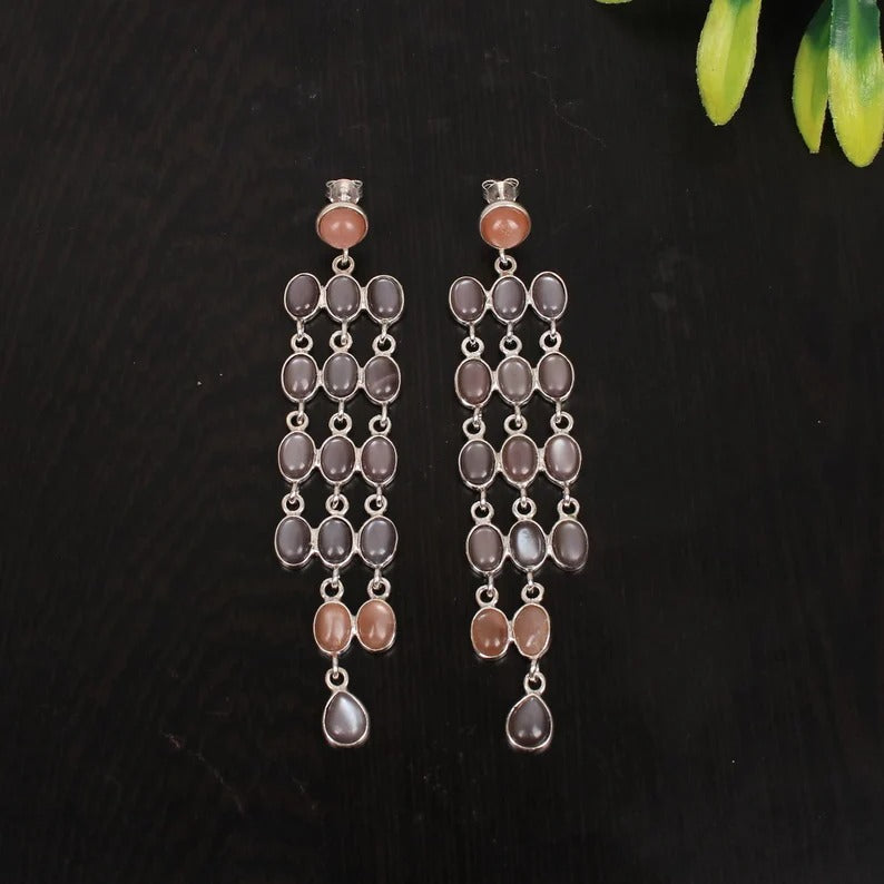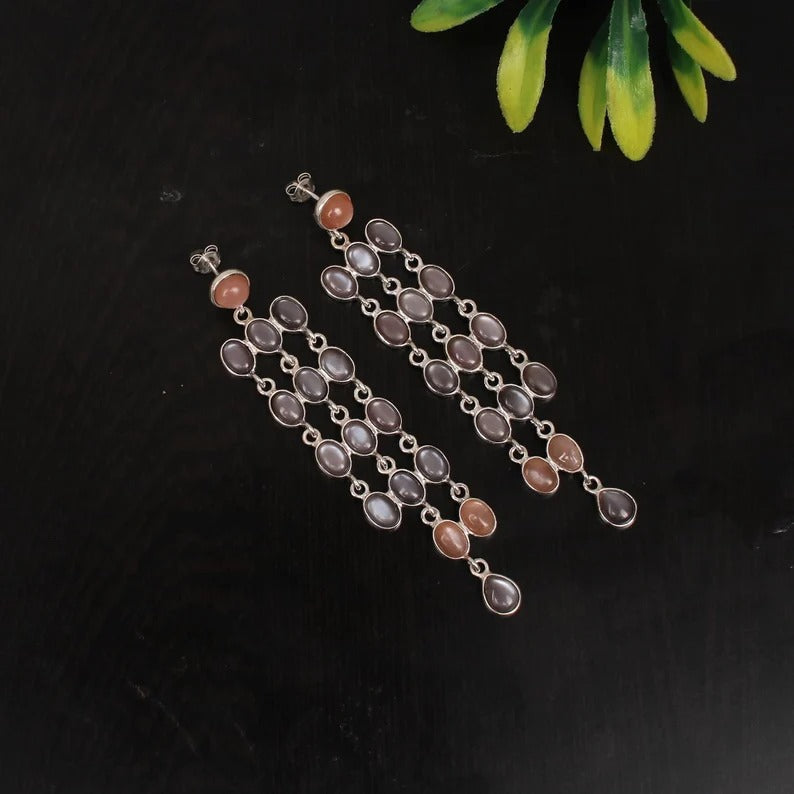 Peach Moonstone Gemstone Dangle 92.5 Sterling Silver Earrings