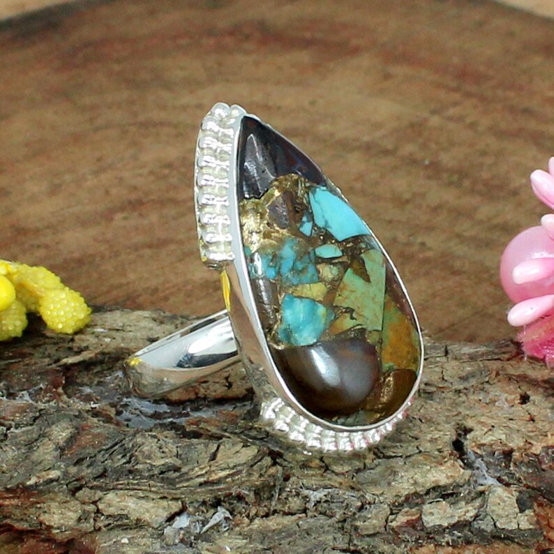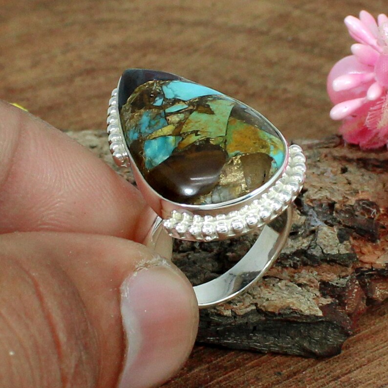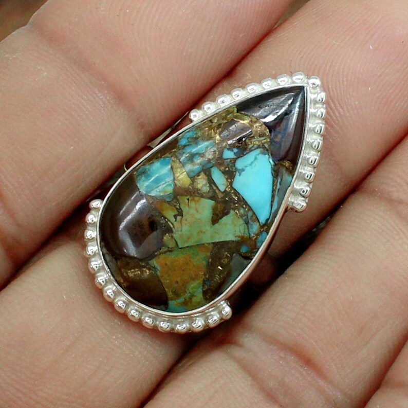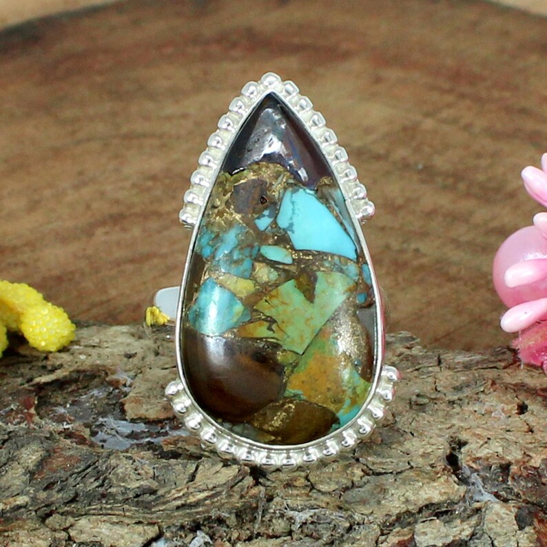 Pear Mohave Mexican Copper Turquoise Sterling Silver Ring