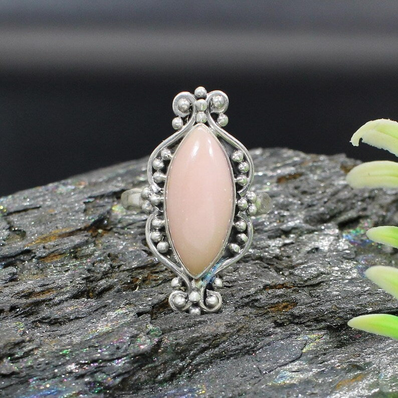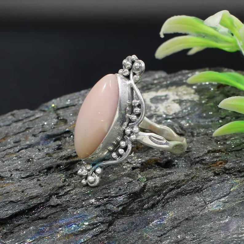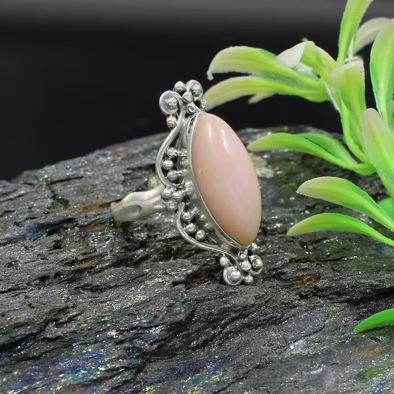 Pink Opal Gemstone 92.5 Sterling Silver Ring