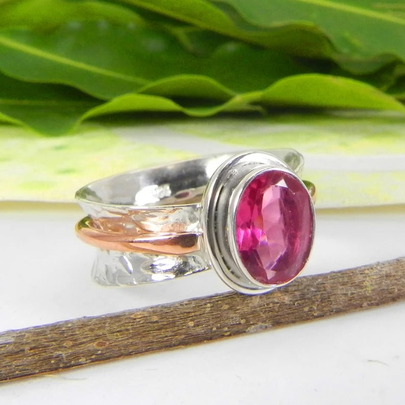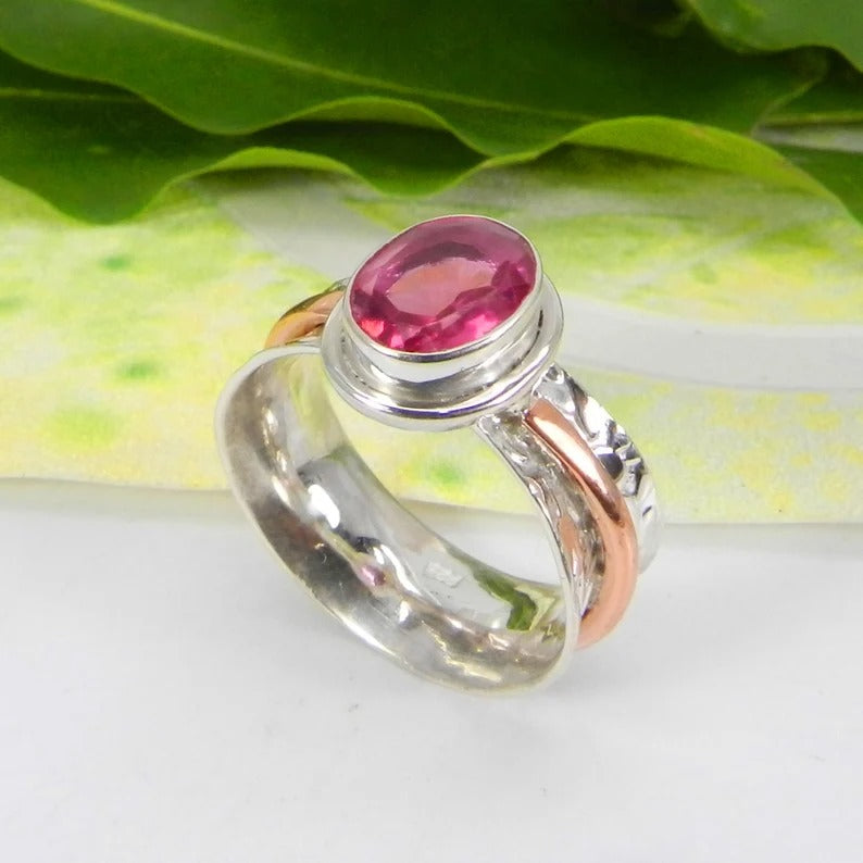 Pink Tourmaline Gemstone 925 Sterling Silver Ring