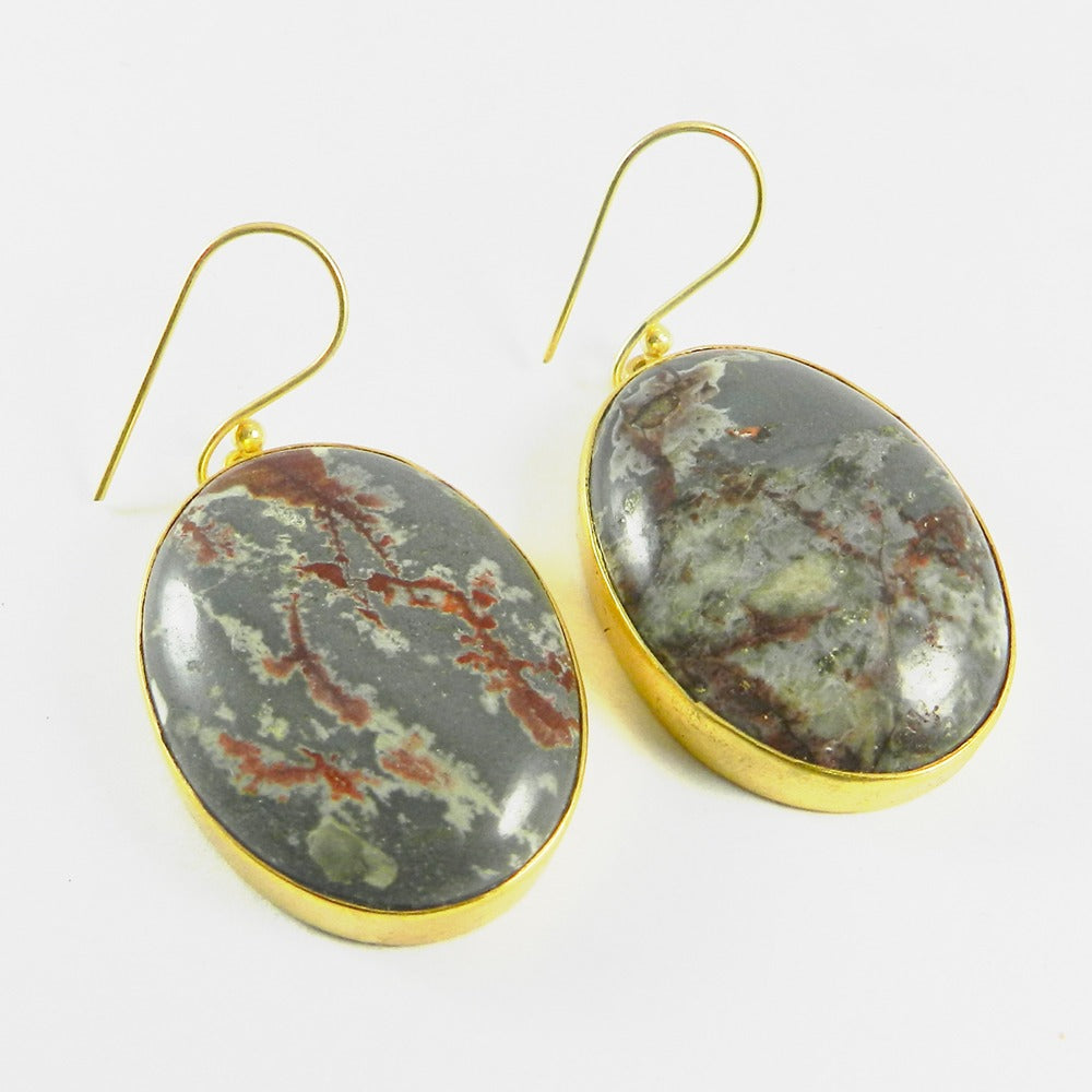 Porcelain jasper 18k Gold Plated Bezel Earring