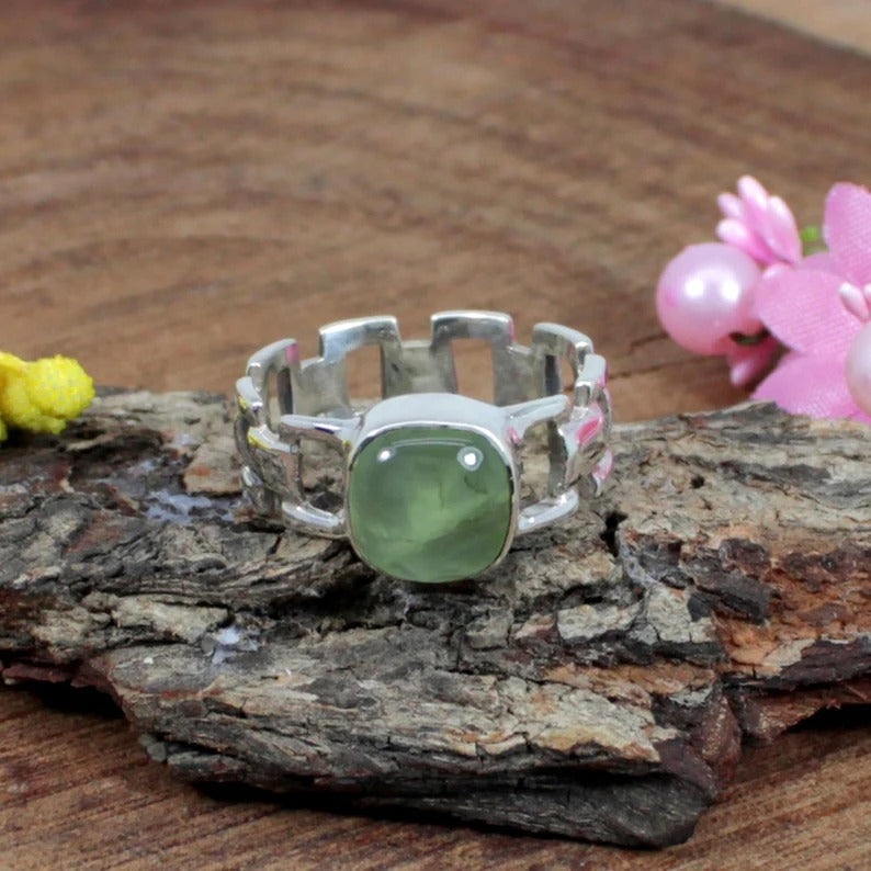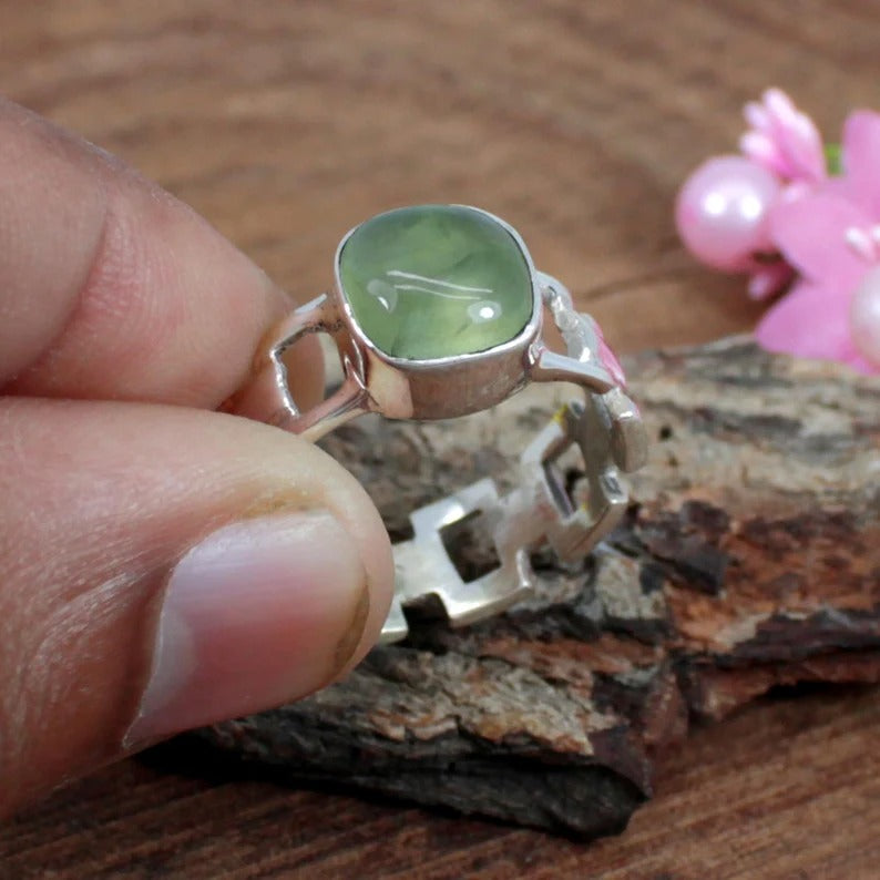 Prehnite Gemstone 92.5 Sterling Silver Ring