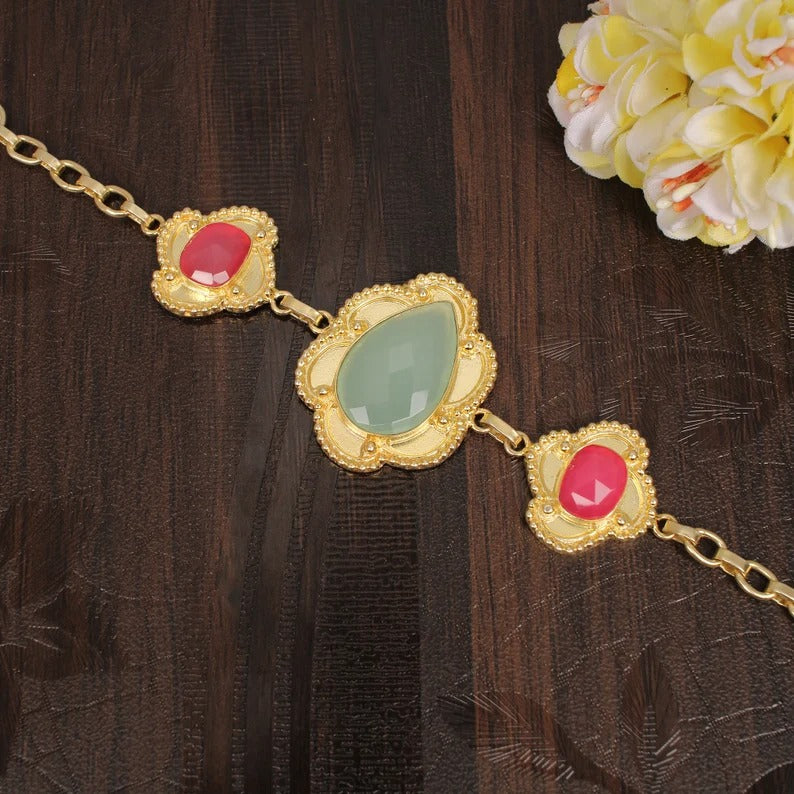 Prehnite Hydro And Fuchsia Chalcedony Gemstone Bracelet