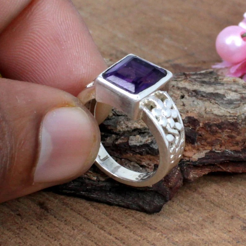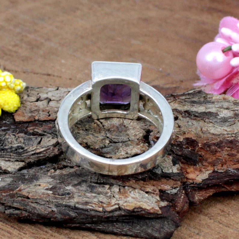 Purple Amethyst Gemstone Sterling Silver Ring