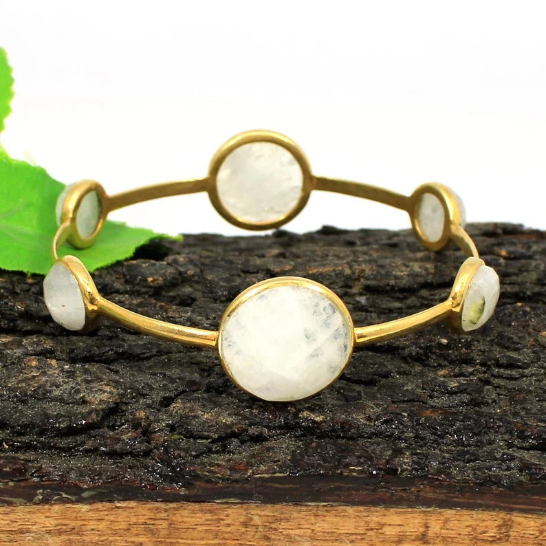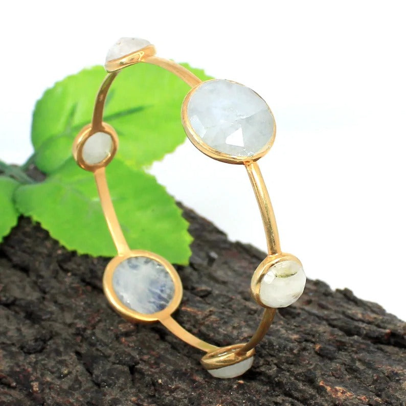 Rainbow Moonstone Gemstone 92.5 Sterling Silver Bangle