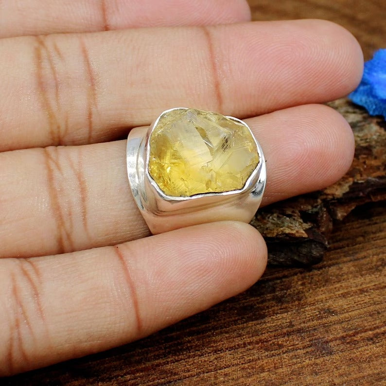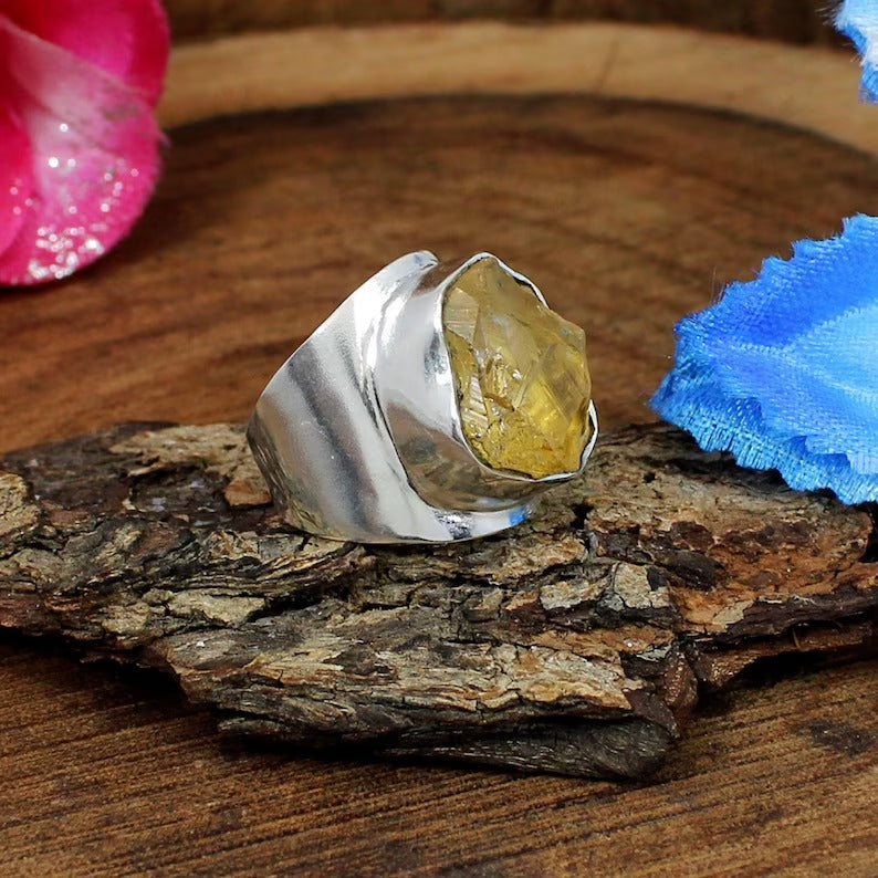 Raw Citrine Gemstone 92.5 Sterling Silver Ring