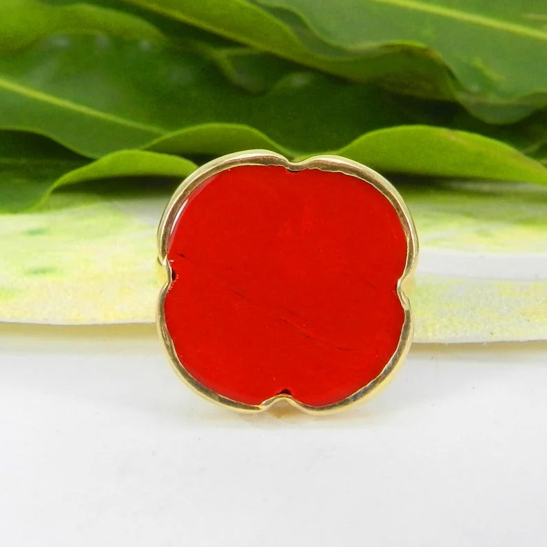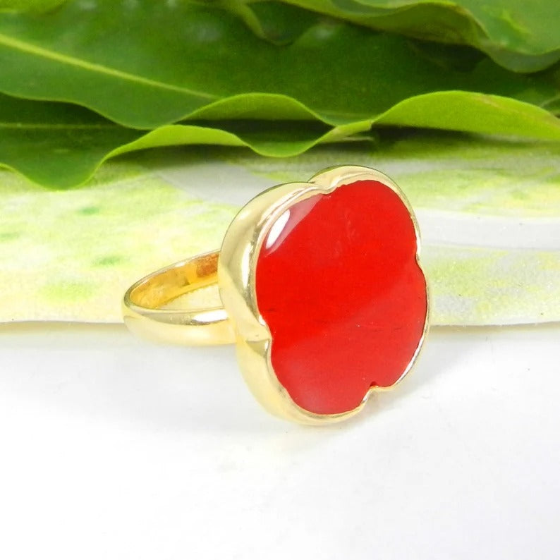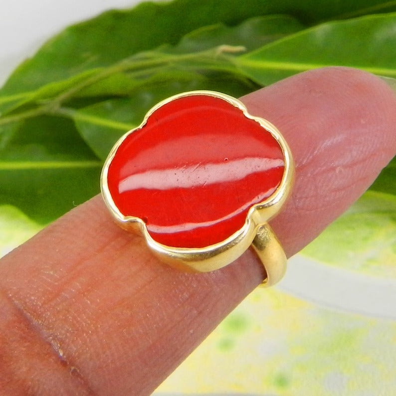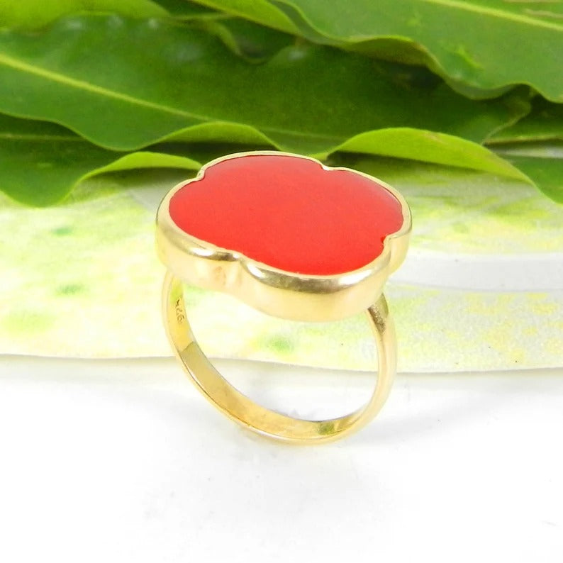 Red Coral Gemstone 92.5 Sterling Silver Ring