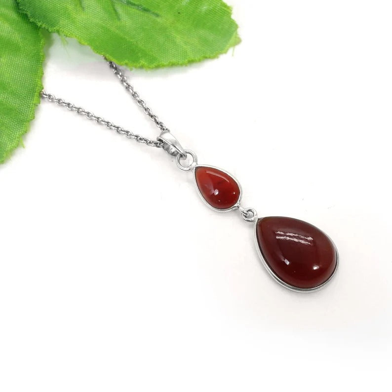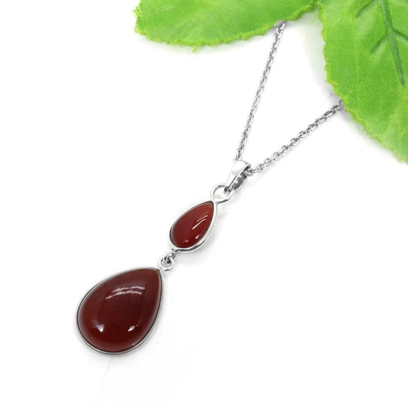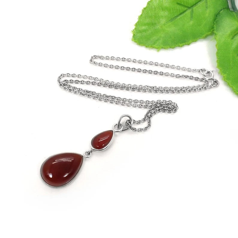 Red Jasper Gemstone 92.5 Sterling Silver Necklace