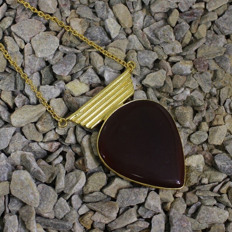 Red Onyx Gemstone Gold Plated Necklace