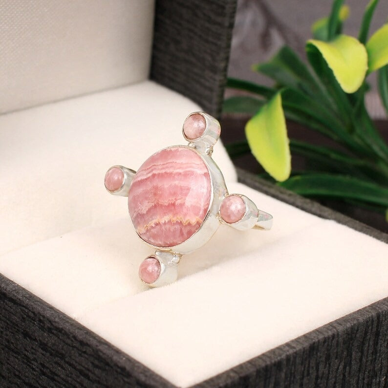Rhodochrosite Gemstone 92.5 Sterling Silver Ring