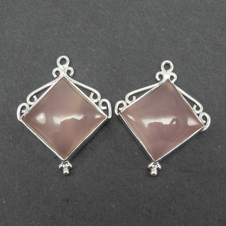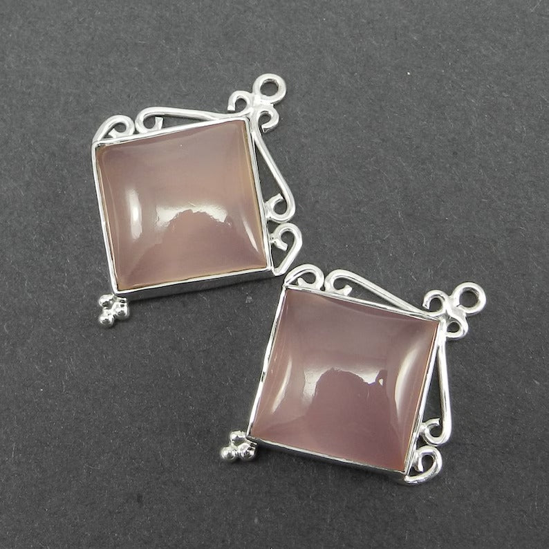 Rose chalcedony square cabochon 925 sterling silver 30 x 24 mm designer single loop station connector for making jewelry