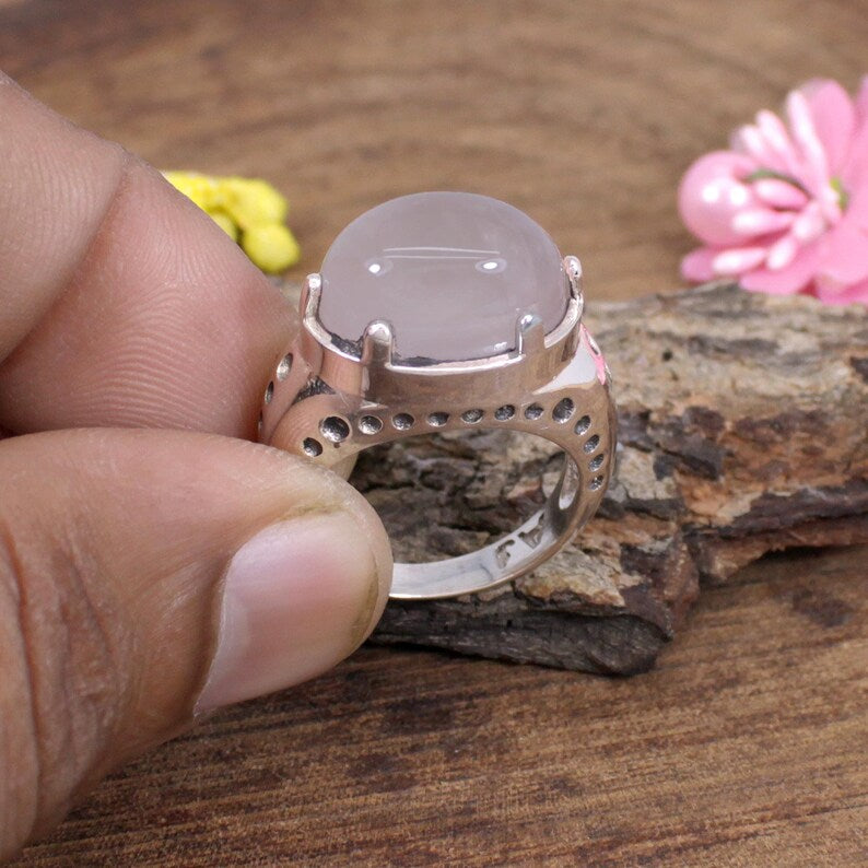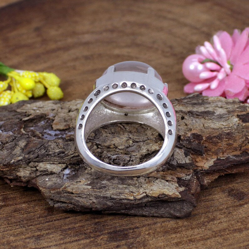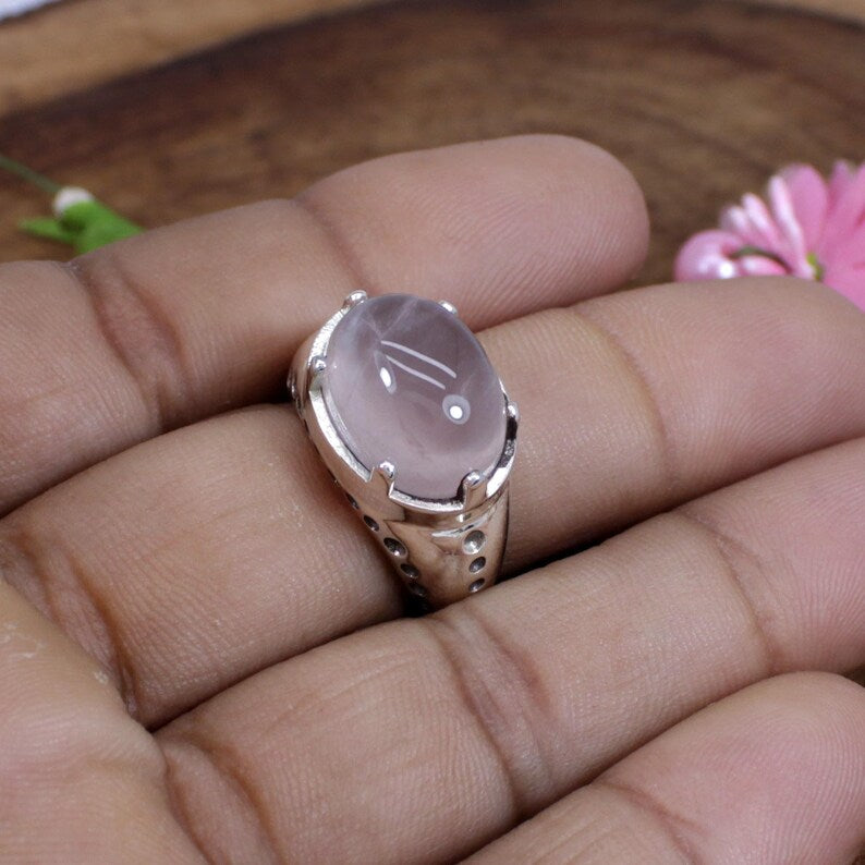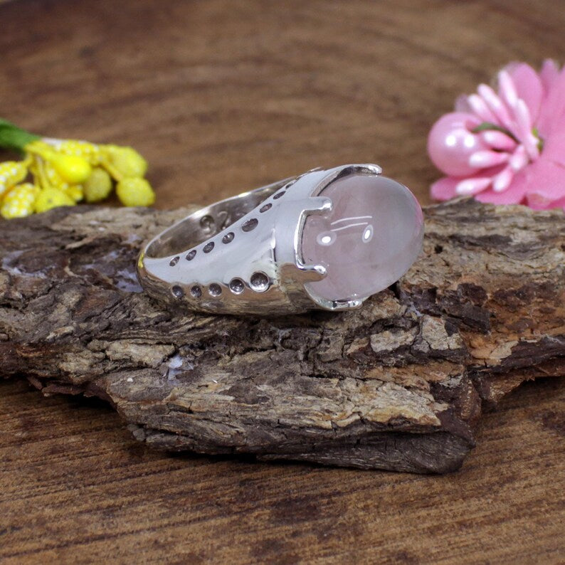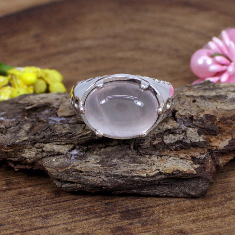 Rose Quartz Gemstone Sterling Silver Ring
