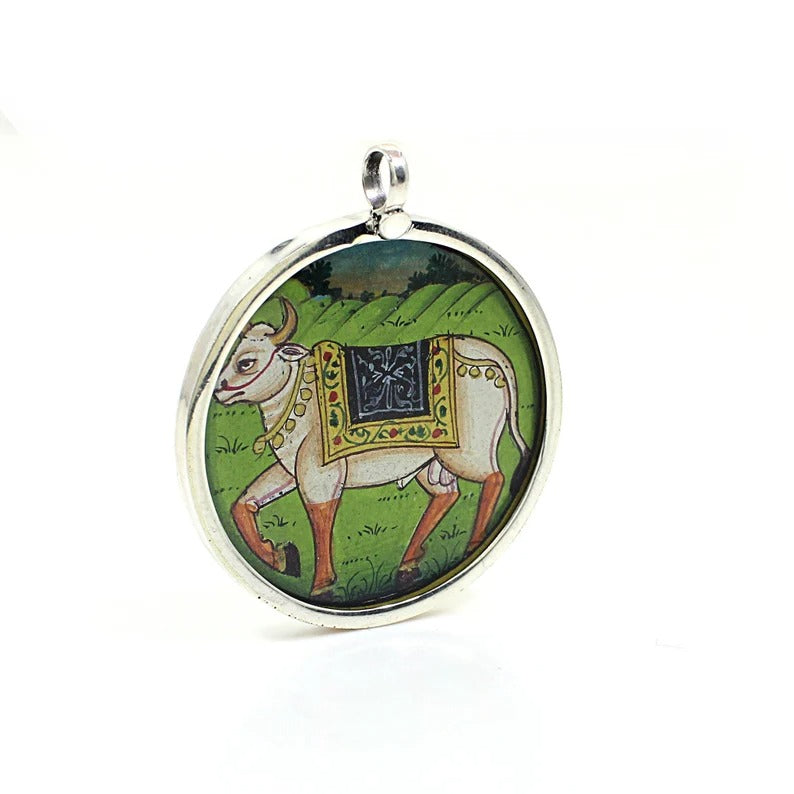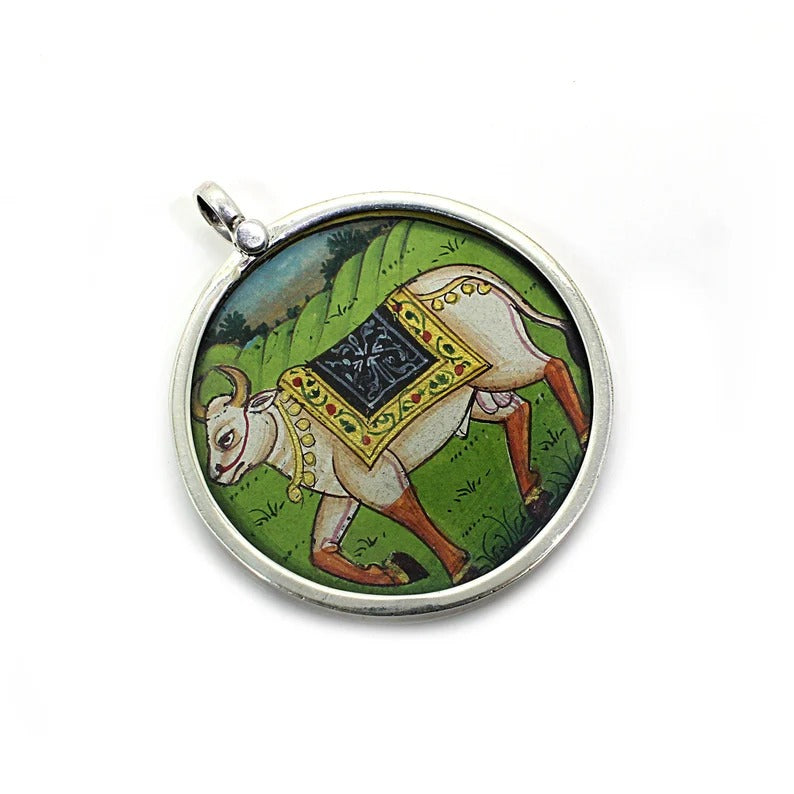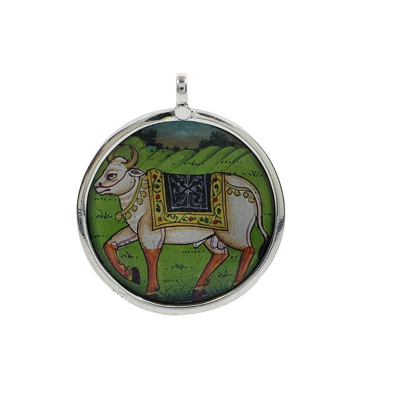 Shiv Ji Nandi 92.5 Sterling Silver Painting Pendant