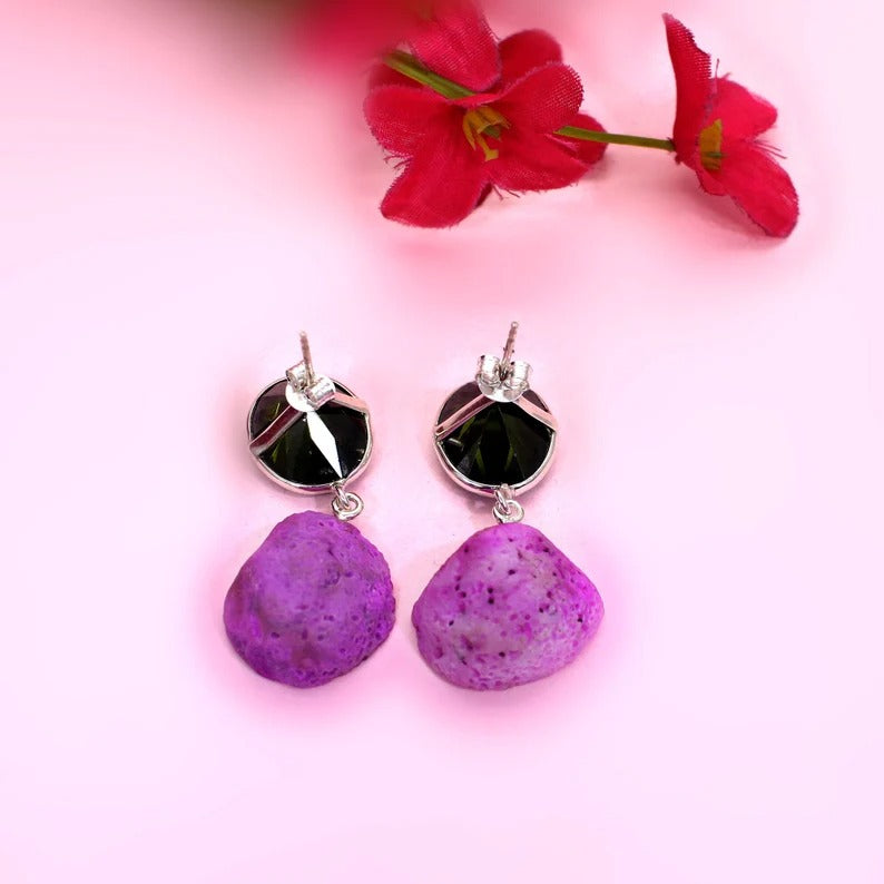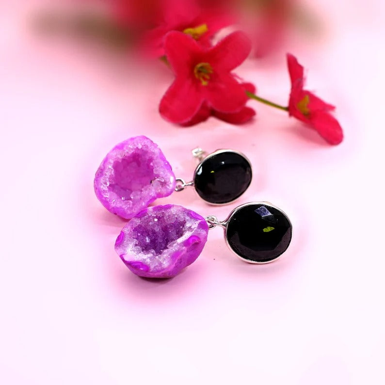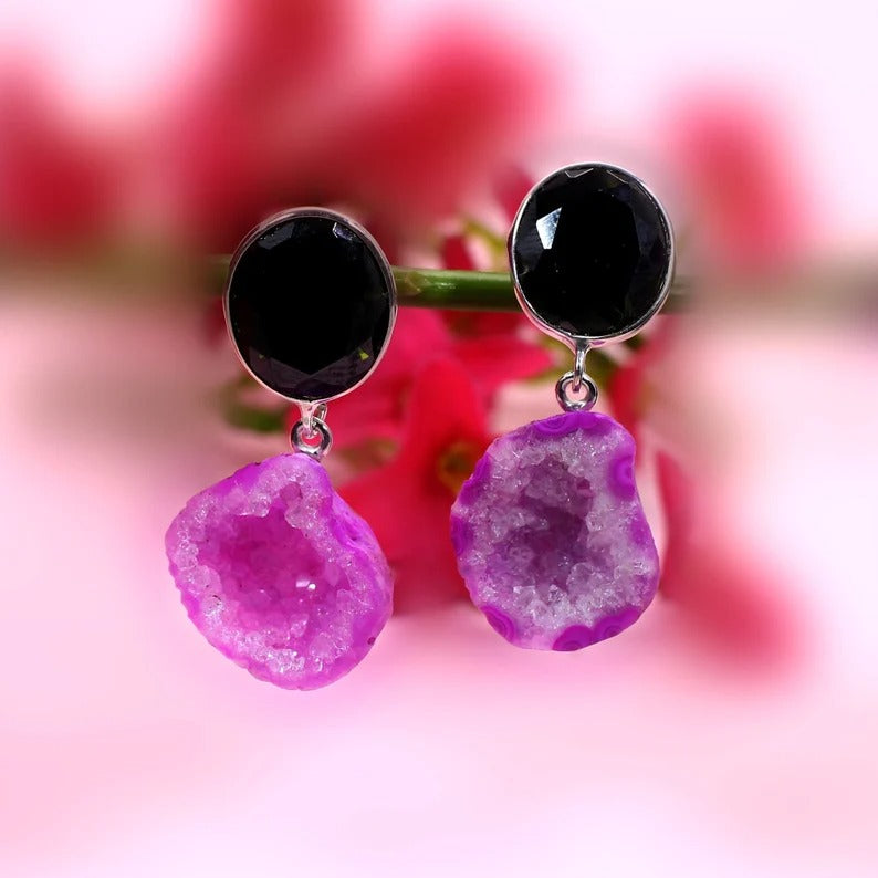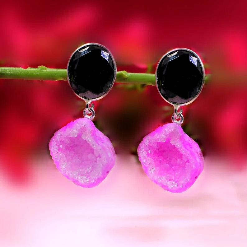 Smoky Quartz And Pink Aura Druzy Gemstone Party Wear 925 Sterling Silver Earrings