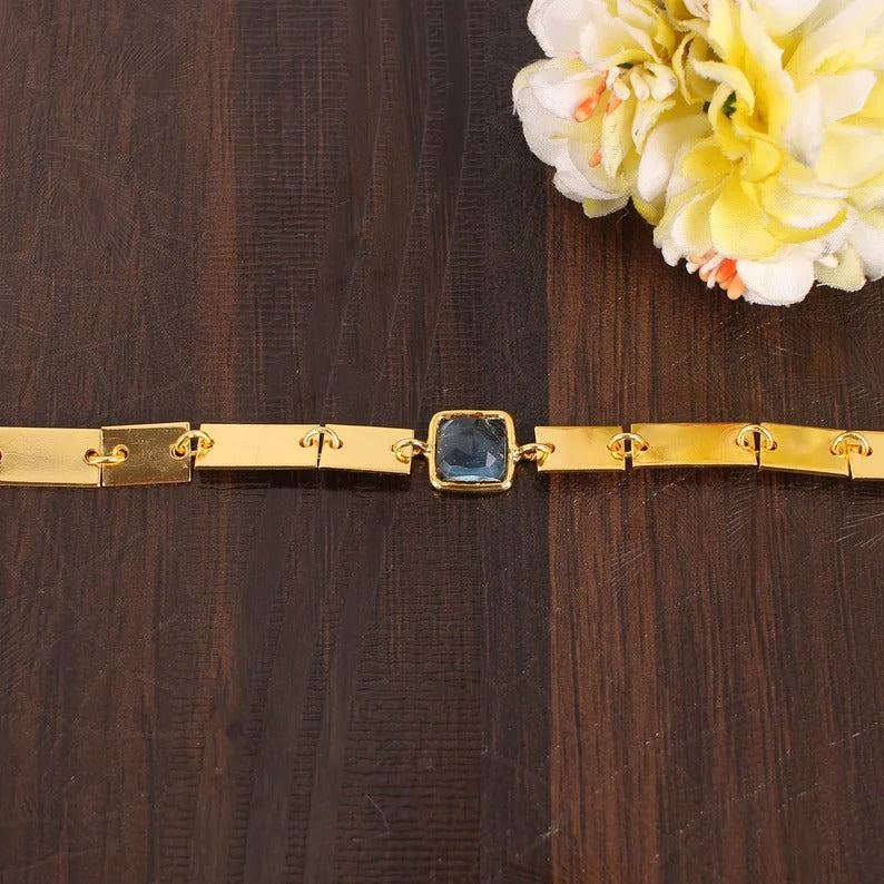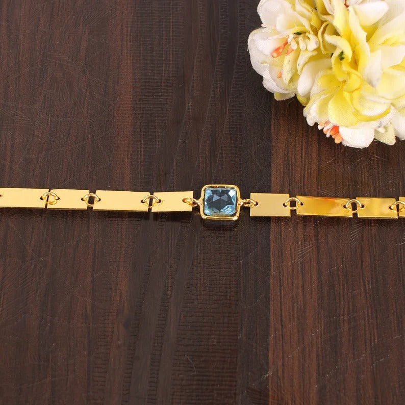 Swiss Blue Topaz Gemstone Gold Plated Brass Bracelet