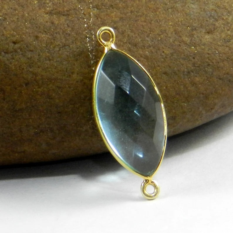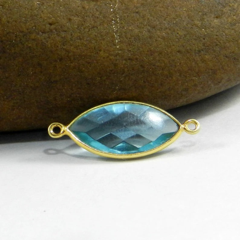Synthetic blue topaz hydro 27 x 11 mm marquise checkerboard cut 925 sterling silver gold plated double loop bezel set connector for jewelry